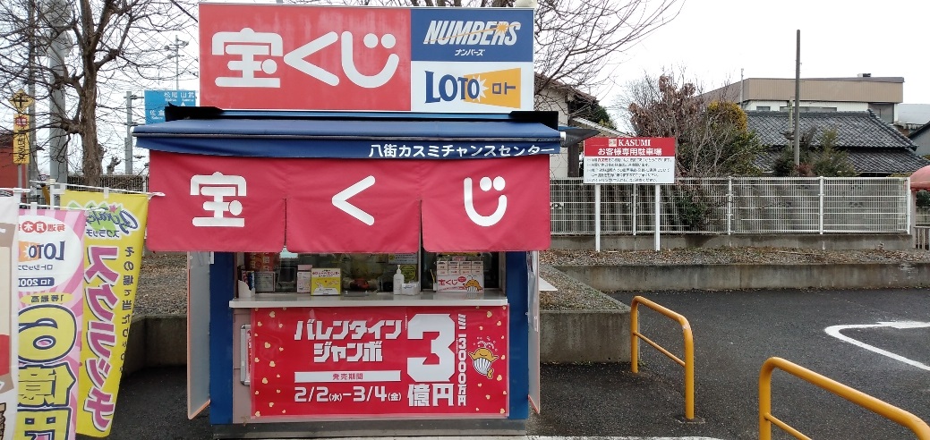 2019年以降100万円以上の高額当せんが7本で合計28百万円!運気急上昇中の売場でそろそろ億の声が聞けるか!? 県道22号線沿い、カスミ八街店の駐車場内で交通至便。地元八街のチャンスセンターでワクワク・ドキドキ、大きな夢を。
