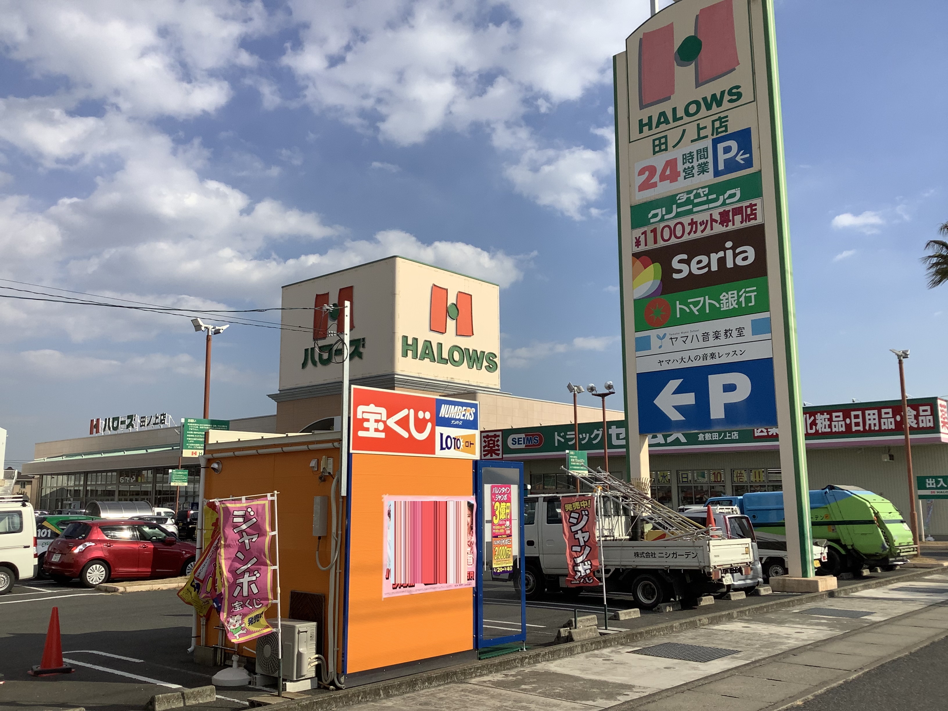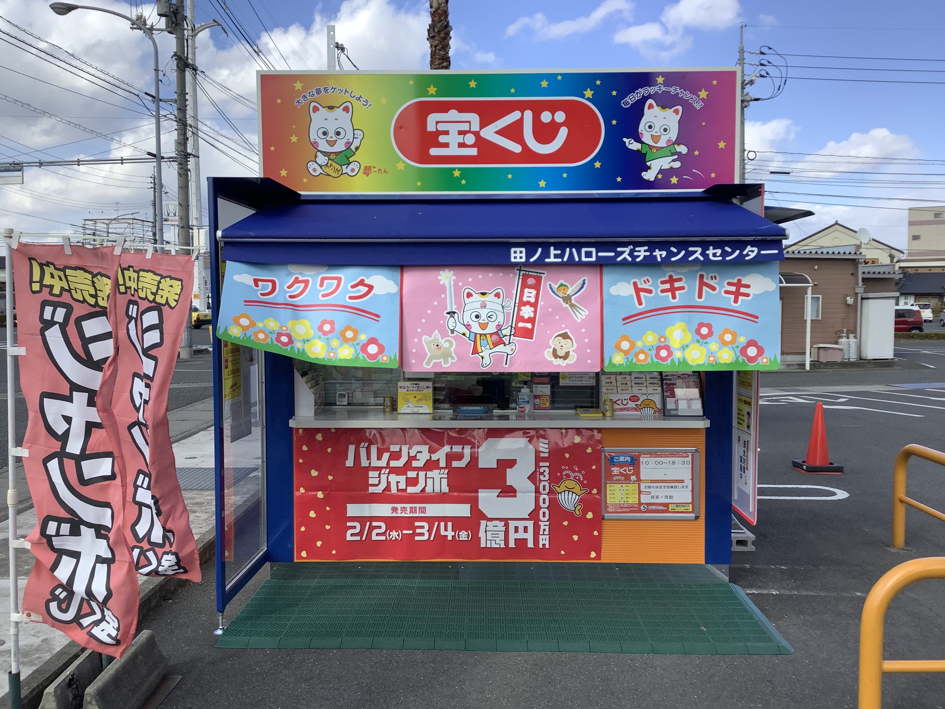 倉敷と言えば白壁で蔵屋敷の美観地区が有名ですが、そこから車で暫く走ると五軒屋線沿いのハローズ田ノ上店駐車場に黄金色の宝くじ売場が見えてきます。地域の皆様に支えていただきながら15年が経過しました。