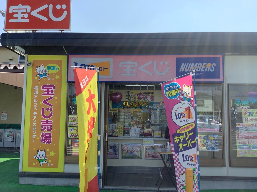 当売場は陣馬街道沿いのスーパーアルプス横川店様駐車場内にあります。。陣馬街道は甲州街道の従街道として古くから交通の要衝と知られ、人が往来し運気が通る場所といえます。当売場で運気上昇!大当たりを!皆さまのご来店をお待ちしております。