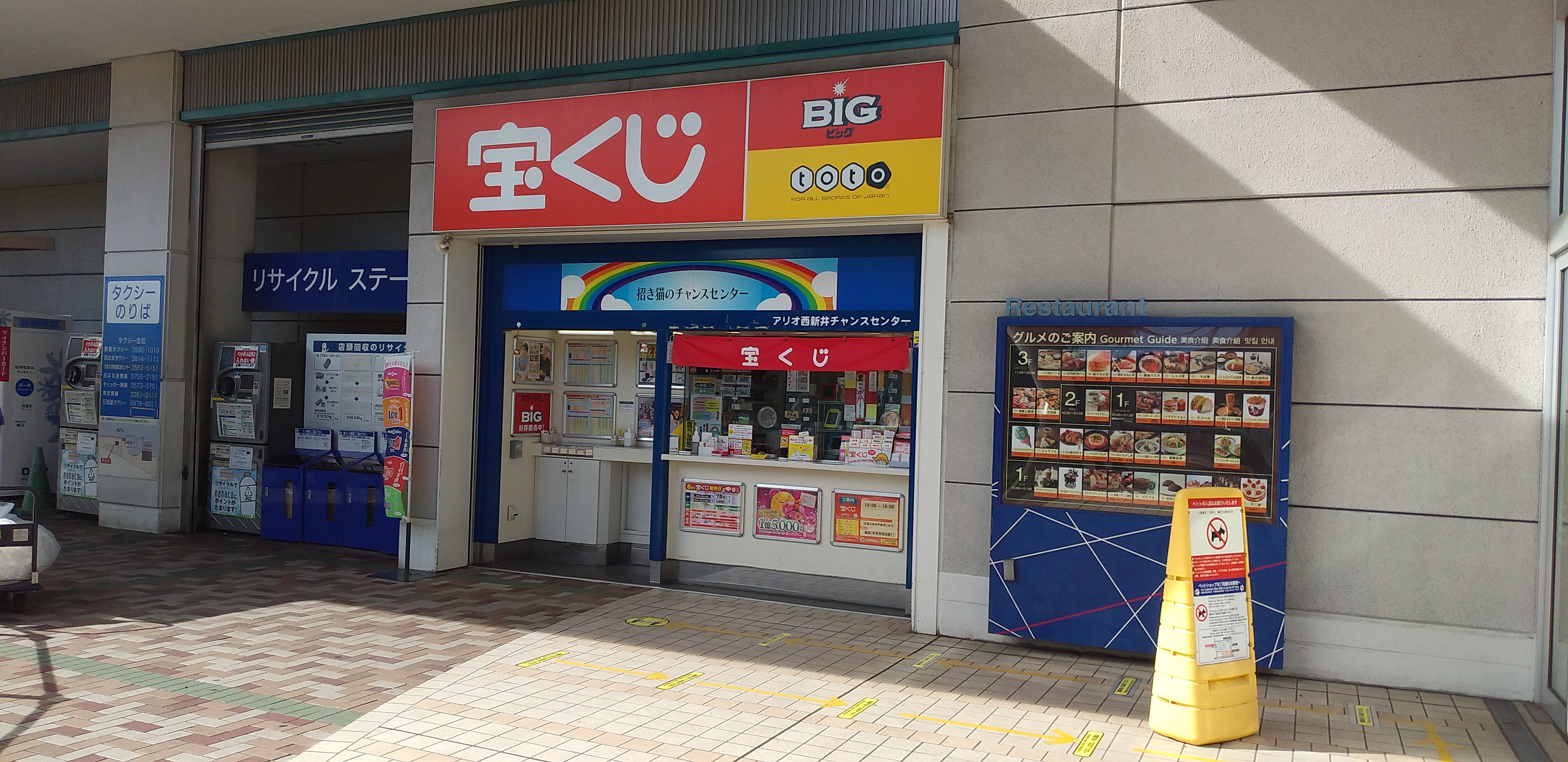 東武スカイツリーライン西新井駅西口から徒歩8分の、「アリオ西新井チャンスセンター」は、関東三大厄除大師として有名なパワースポット、西新井大師の南南東約1kmに位置する宝くじ売場です。