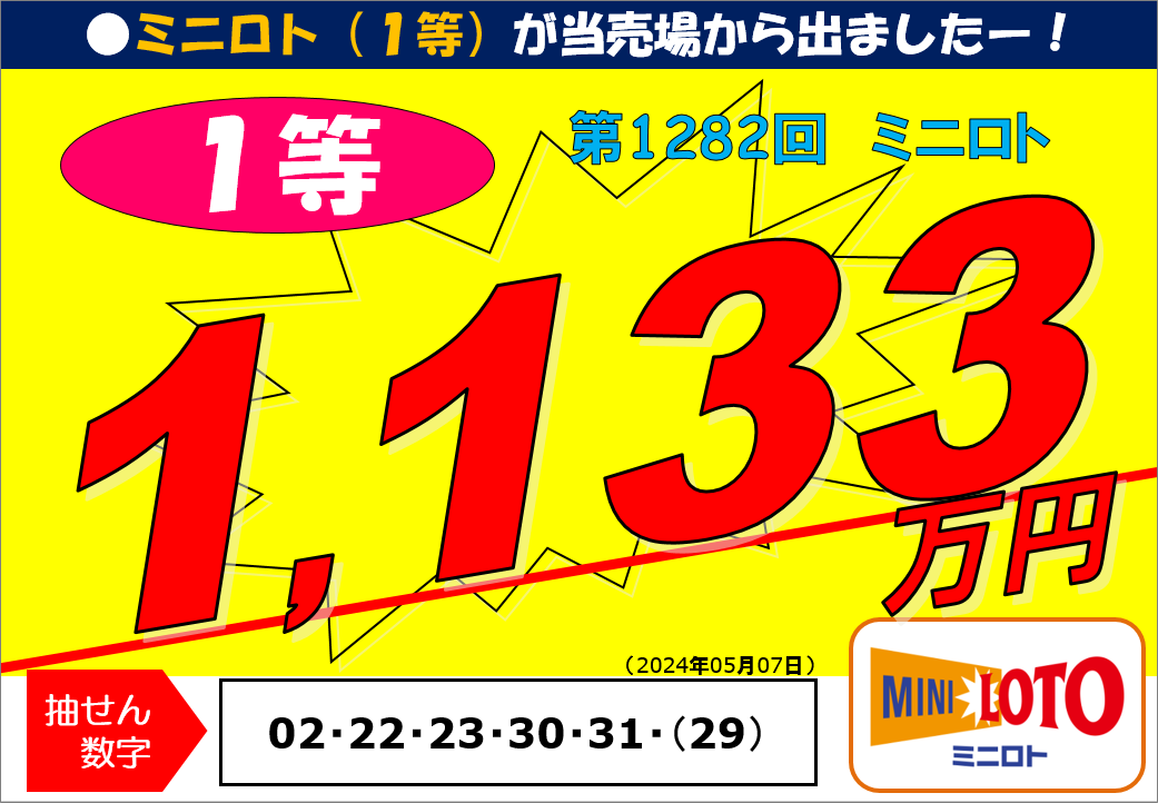 第1282回ミニロト1等11,337,700円