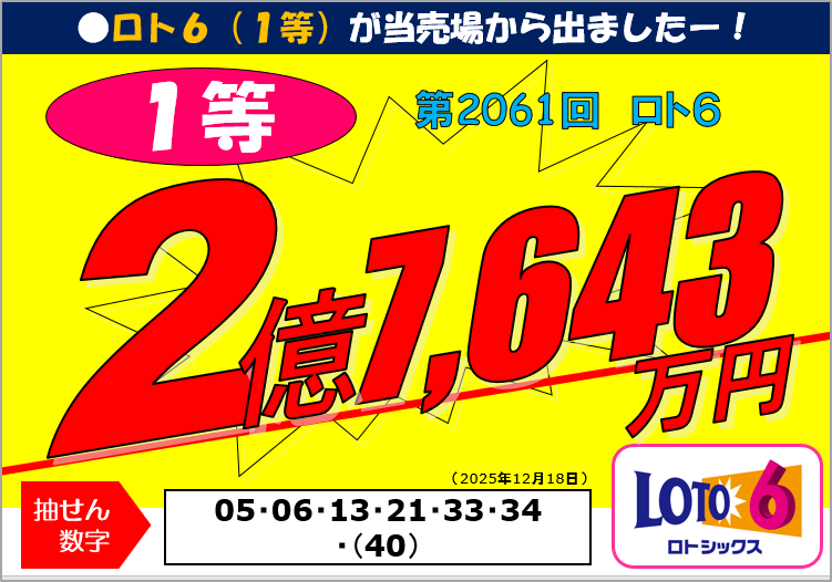 大当り!ロト6 1等 3億4,051万円 出ました!!