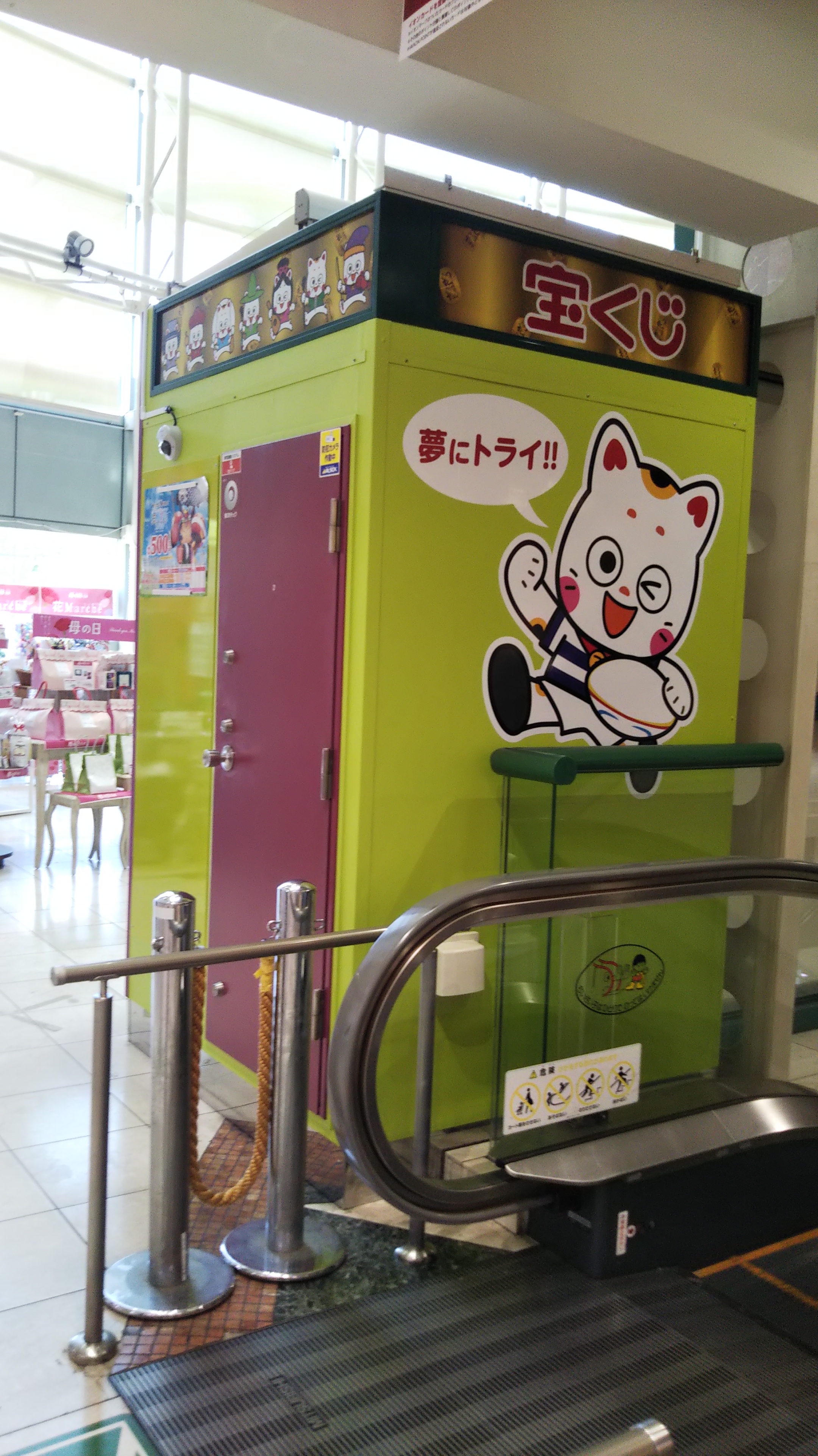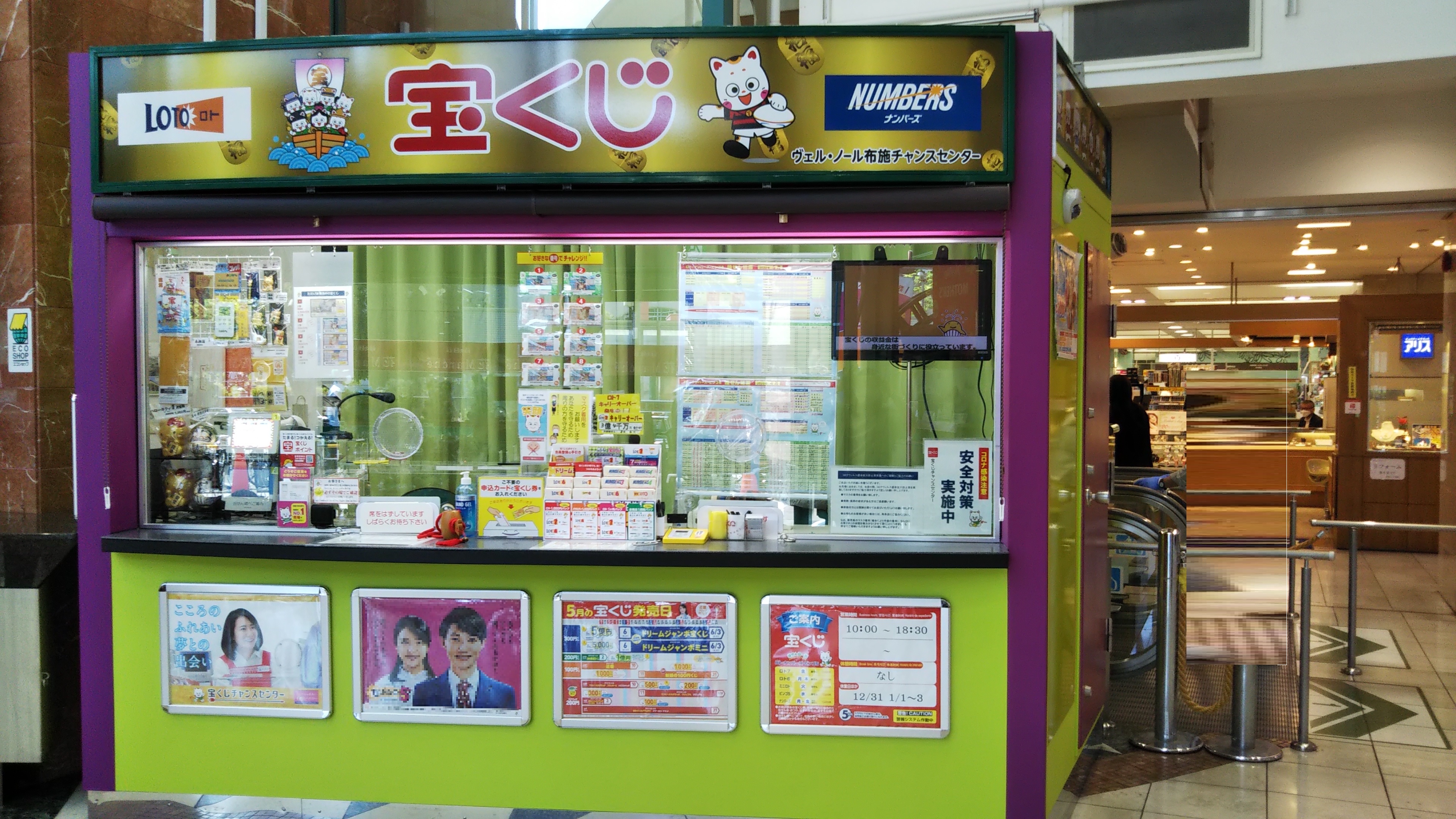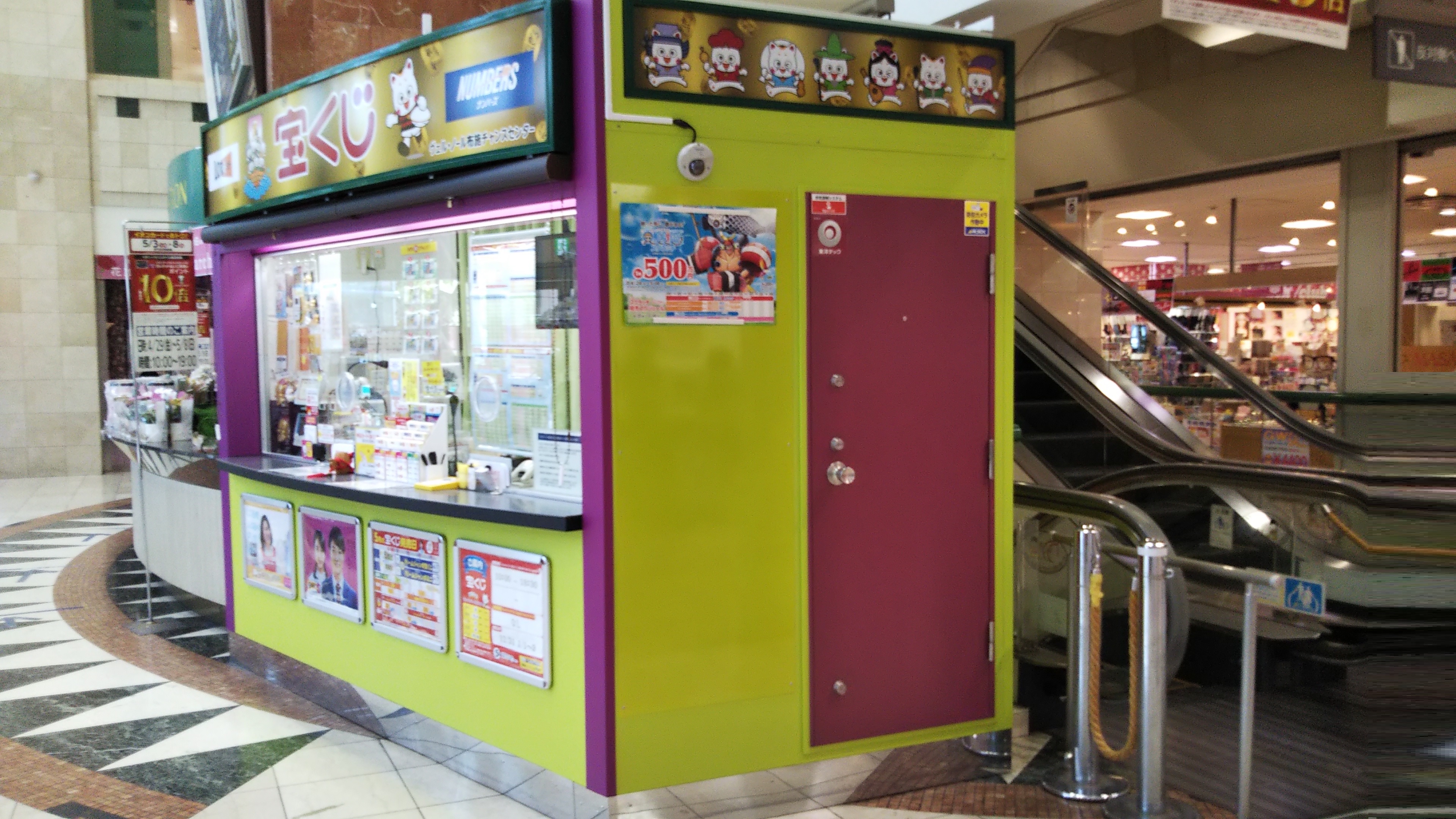 東大阪市の玄関口である近鉄布施駅の北側にある、イオン布施駅前店内の1階正面出入口入って直ぐにある宝くじ売場。