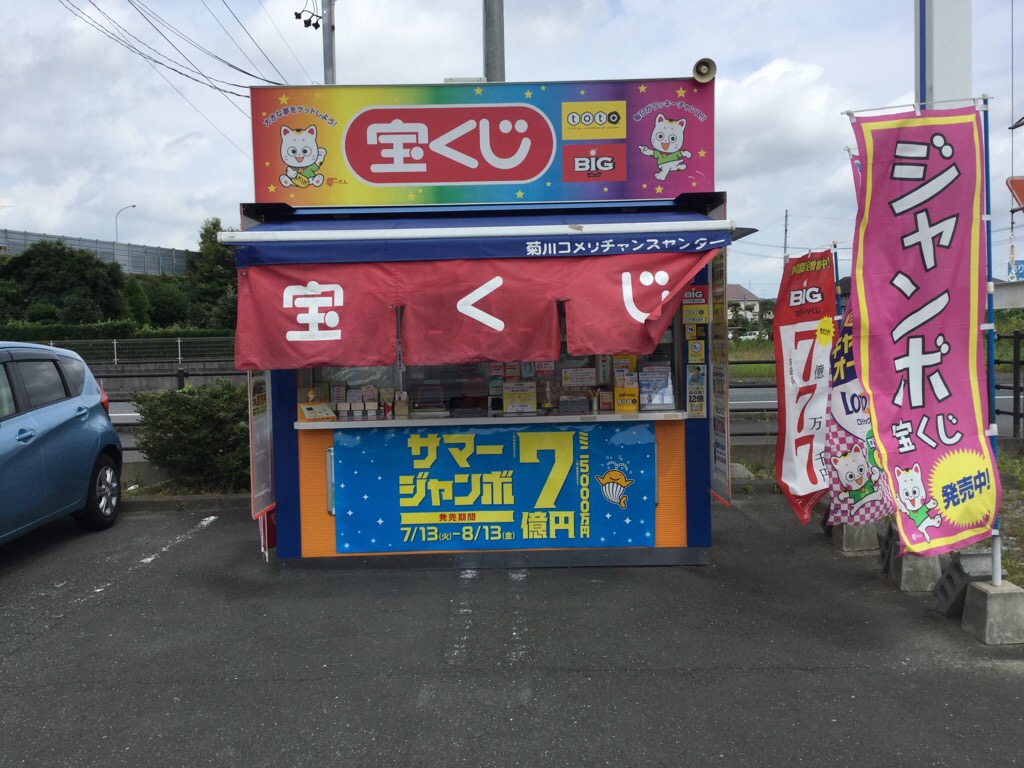 当売場は、菊川市内唯一のチャンスセンター:宝くじ売場です。東名高速道路 「菊川インターチェンジ」からほど近く、コメリハード&グリーン菊川店様の大きな駐車場の道路サイドに位置しております。ここ数年、