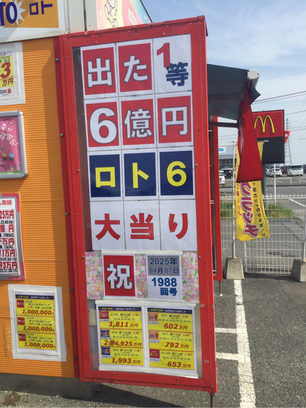 そしてまたまた、2025年4/7にロト6で1等・6億円の高額当せんが出ました!!