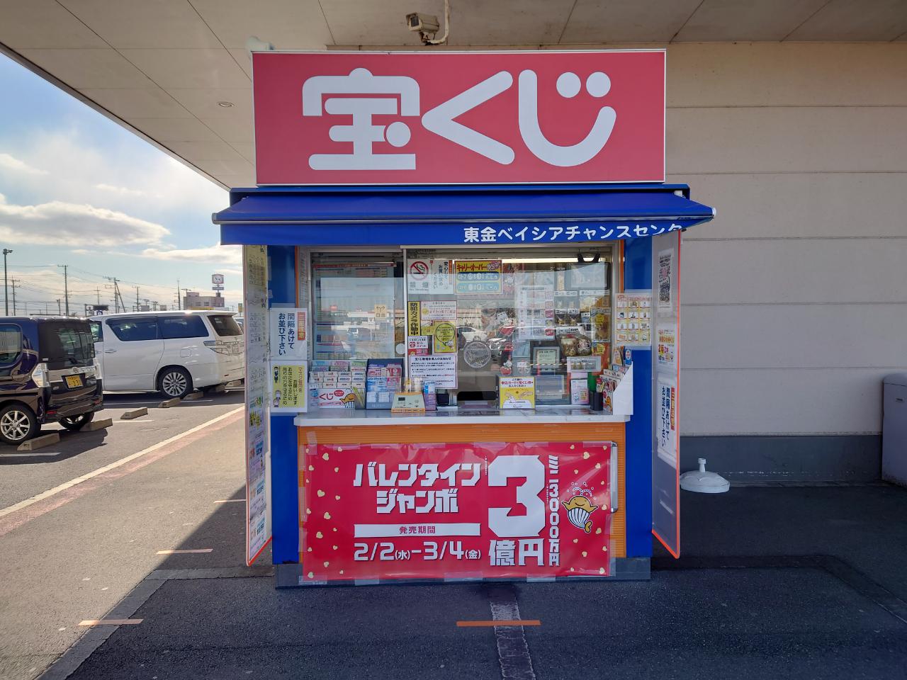 「東金ベイシアチャンスセンター」は東金市東部にある『ベイシア東金店』東側入口横にある宝くじ売場です。すぐ近くには、『道の駅みのりの郷東金』があります。この地域は農業が盛んで苺狩りで多くの観光客が訪れます。売場には高額当せんが出ることを願って、九十九里七福神めぐりの御朱印を飾っています。皆様のご来店をスタッフ一同心よりお待ちしています。