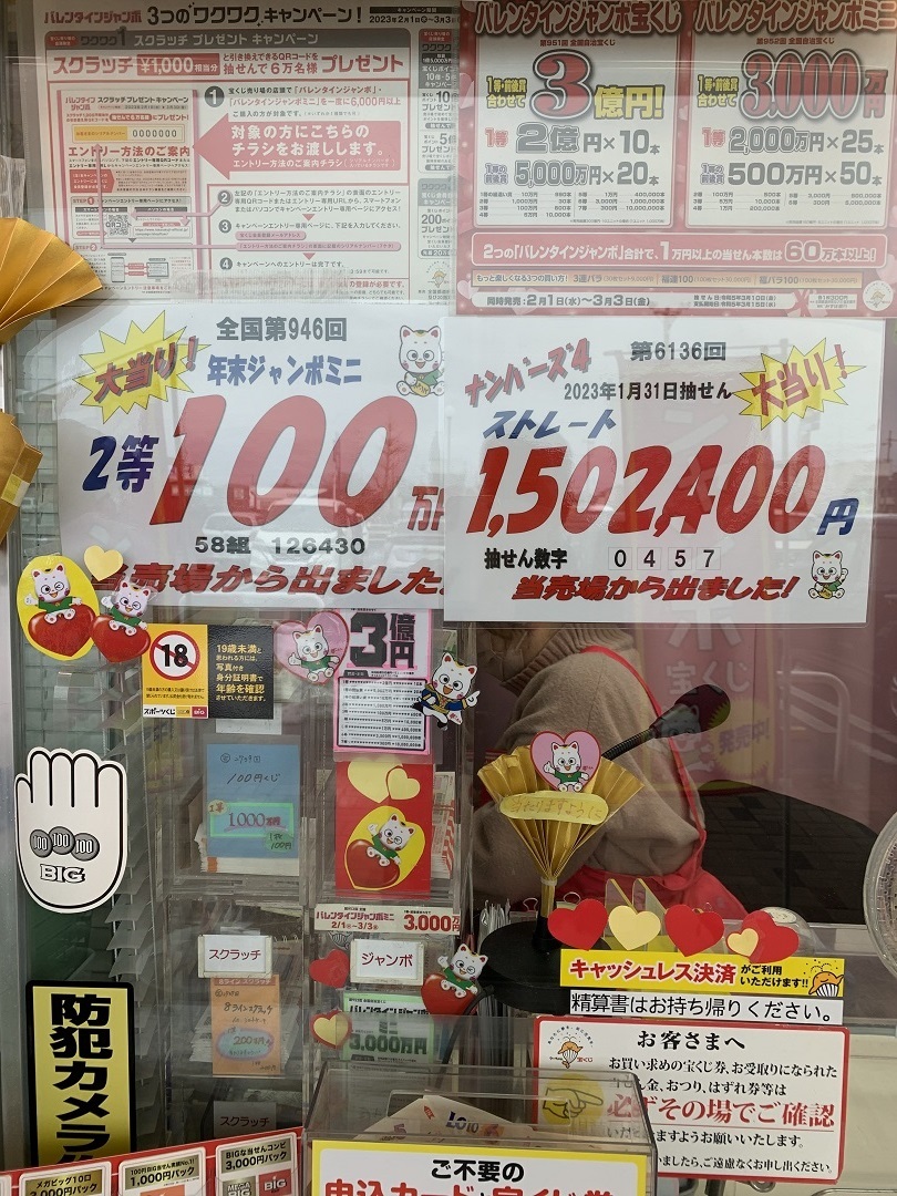 ※年末ジャンボミニ2等100万円につづきナッバーズ4のストレート150万円も出ました!
