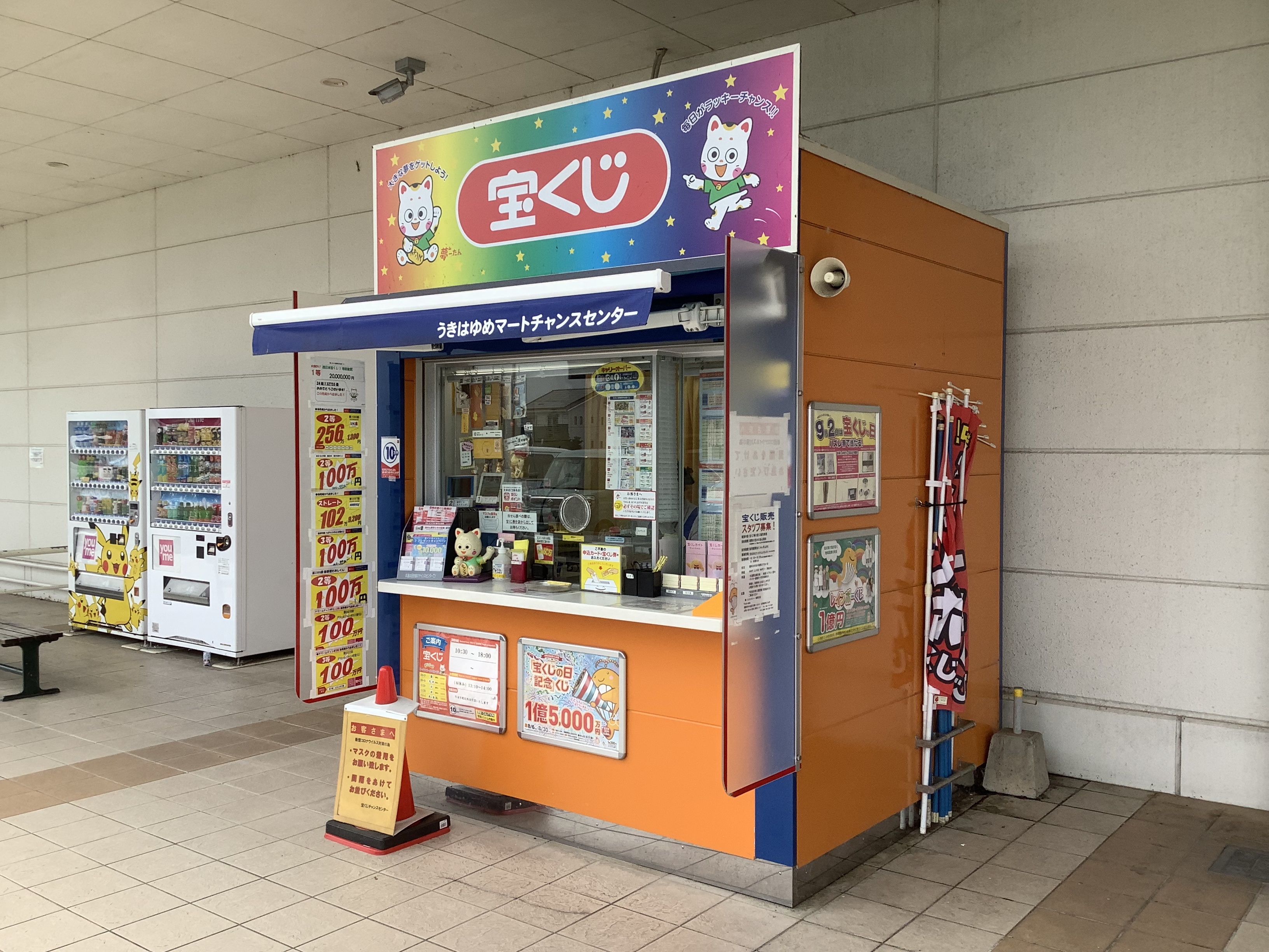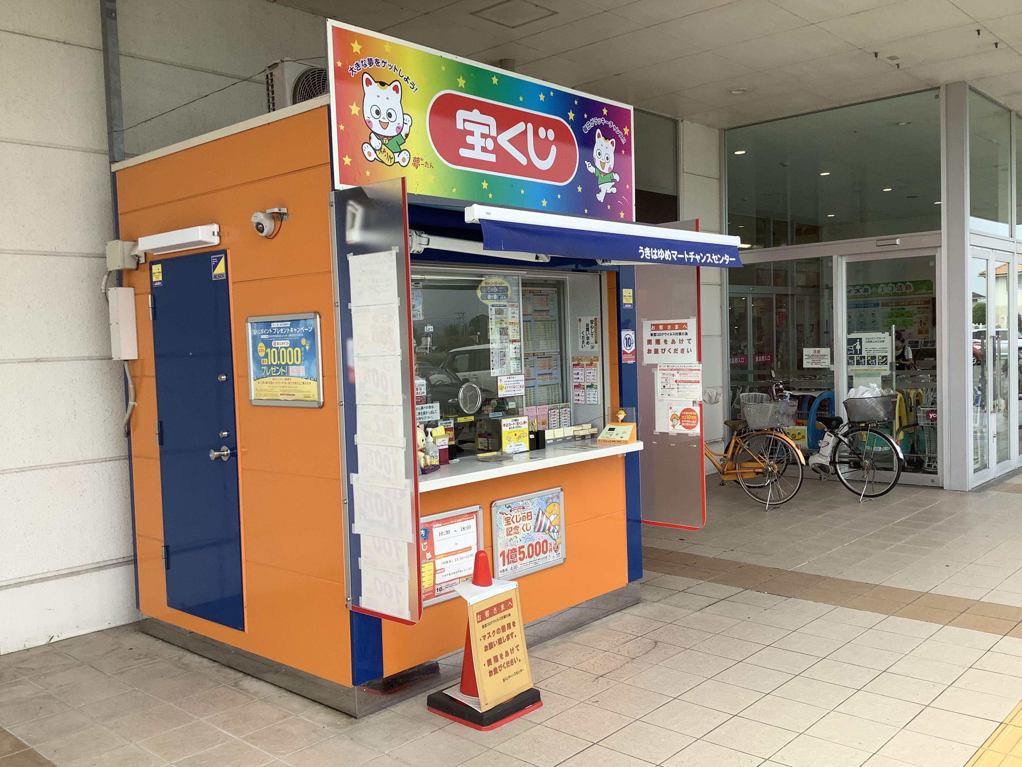 JR久大本線筑後吉井駅から北東へ1.8km、国道210号線沿いのゆめマートうきは店にある宝くじ売場です。うきは市内には、参道に立ち並ぶ鳥居と広大な筑後平野とのコントラストでSNS映え抜群の絶景パワースポット・浮羽稲荷神社があります。ご利益は五穀豊穣・健康長寿・商売繁盛・学業成就など様々あり、ついでに金運アップもお願いしてみましょう。絶景を堪能してパワーチャージした後は宝くじで運だめし。ぜひステキな夢が叶えてください。皆さまのご来店をスタッフ一同お待ちしています。