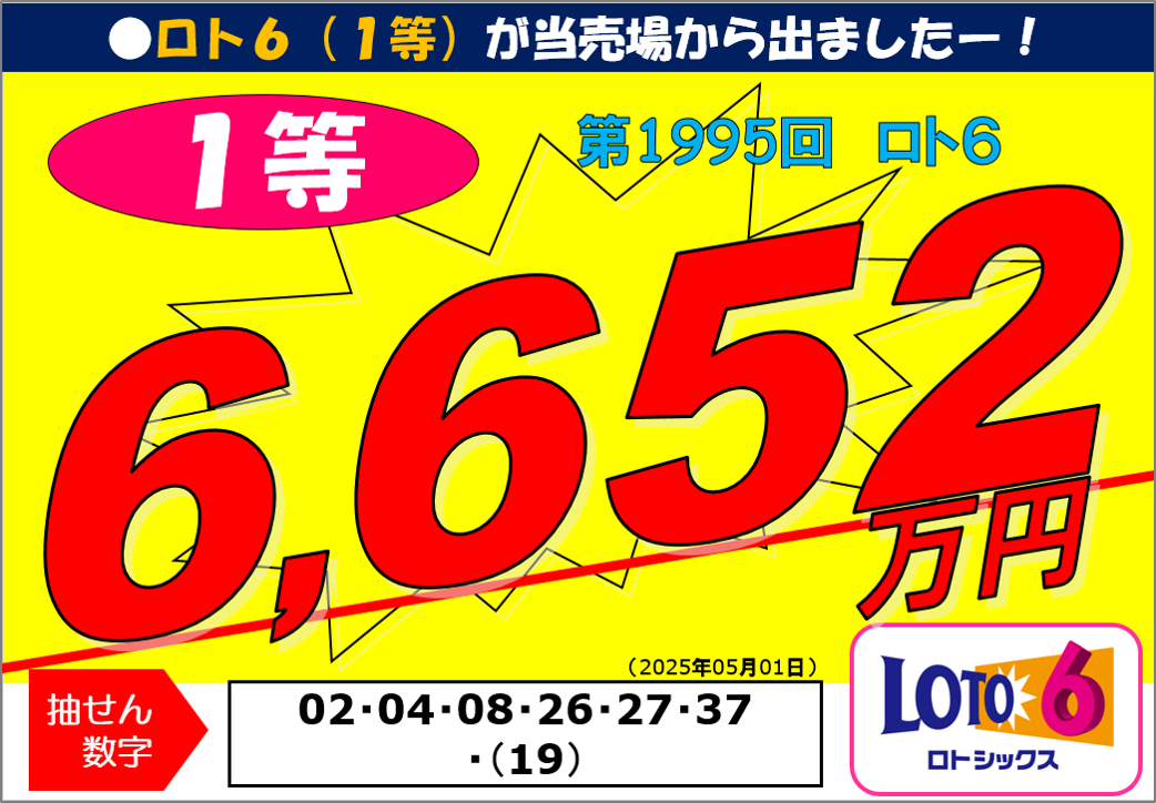 第1995回ロト61等66,525,400円