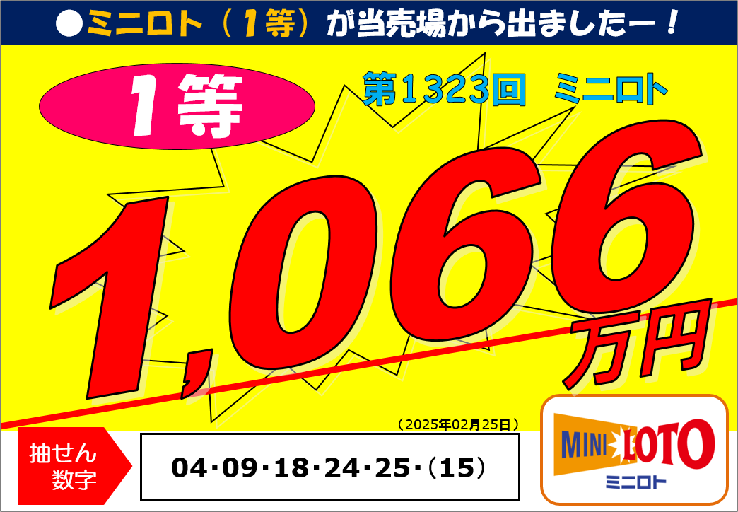 第1323回ミニロト1等10,662,700円