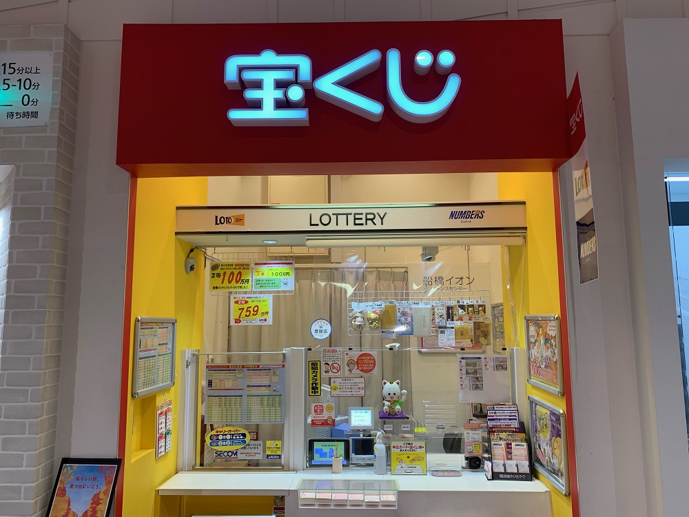 東武アーバンパークライン新船橋駅直結のイオンモール船橋店内にある当売場は、雨の日、風の日、雪の日にも快適に数字選びをして頂ける快適な売場です。 大型駐車場も完備。 皆さまのご来店をお待ちしております。