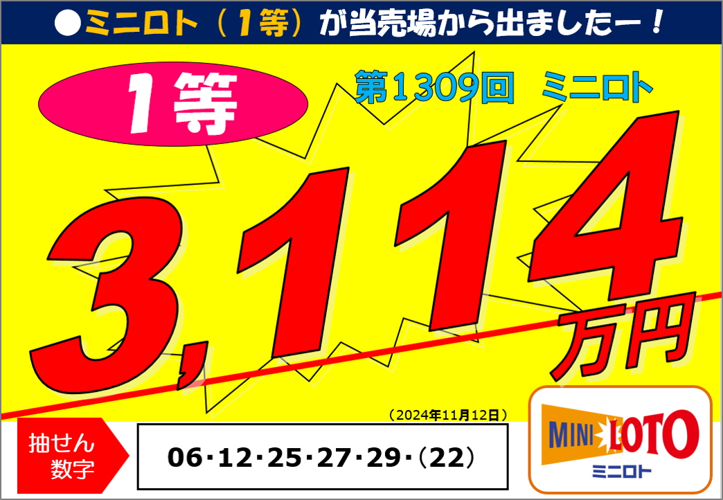 第1309回ミニロト1等31,146,600円