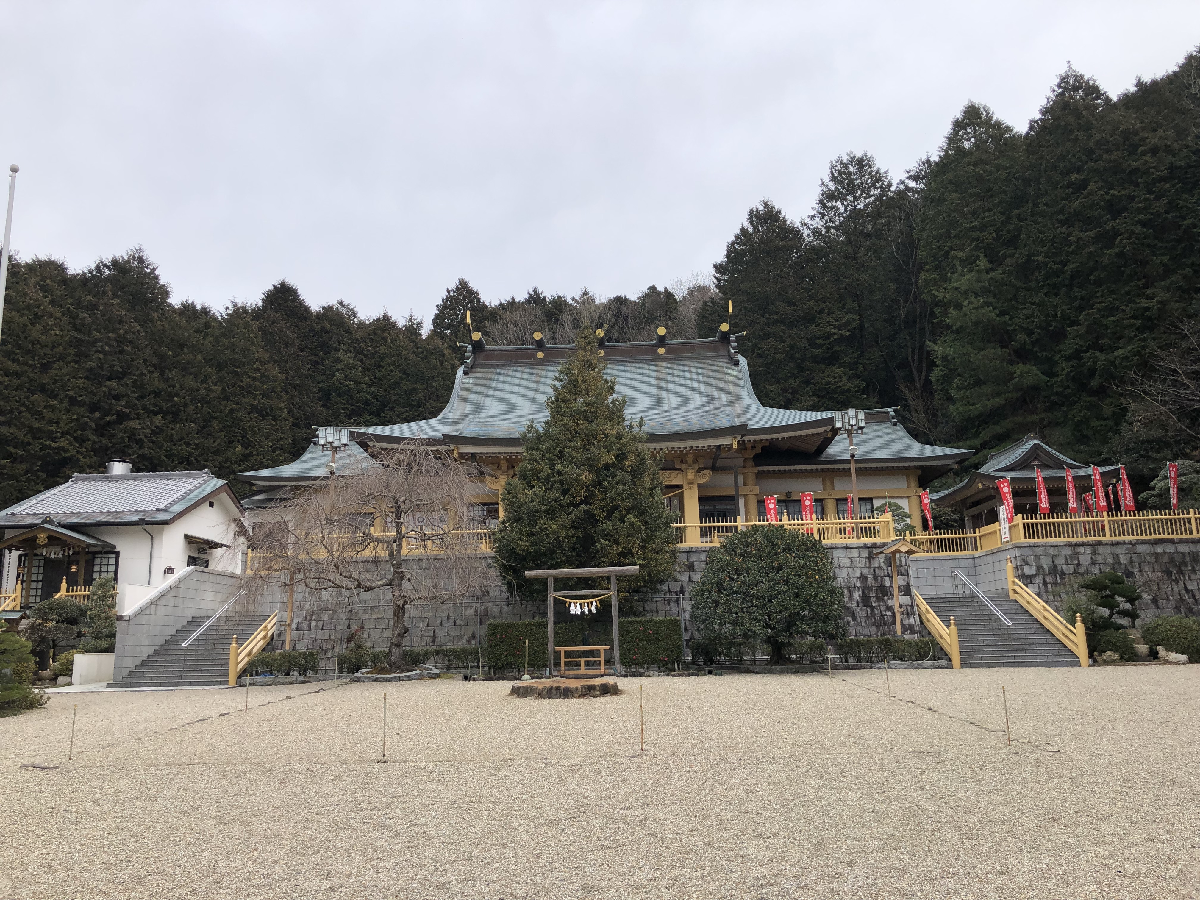 愛知県幸田町には、別名「あじさい寺」と呼ばれる本光寺、平安時代に建てられ本堂には幸田町の指定文化財である本尊の「木造薬師如来像」が安置されている天台宗瑠璃山浄土寺、宗源神道を唯一継承し天照大御神と大己貴大神を併祀する崇神朝以前の秘儀を伝える貴嶺宮(写真)など、観光、パワースポット巡りにぴったりの神社仏閣がたくさんあります。のんびりと散策を楽しんだ後は、ぜひ幸田カメリアガーデンチャンスセンターへお越しください。皆様のご来店を心よりお待ちしております。