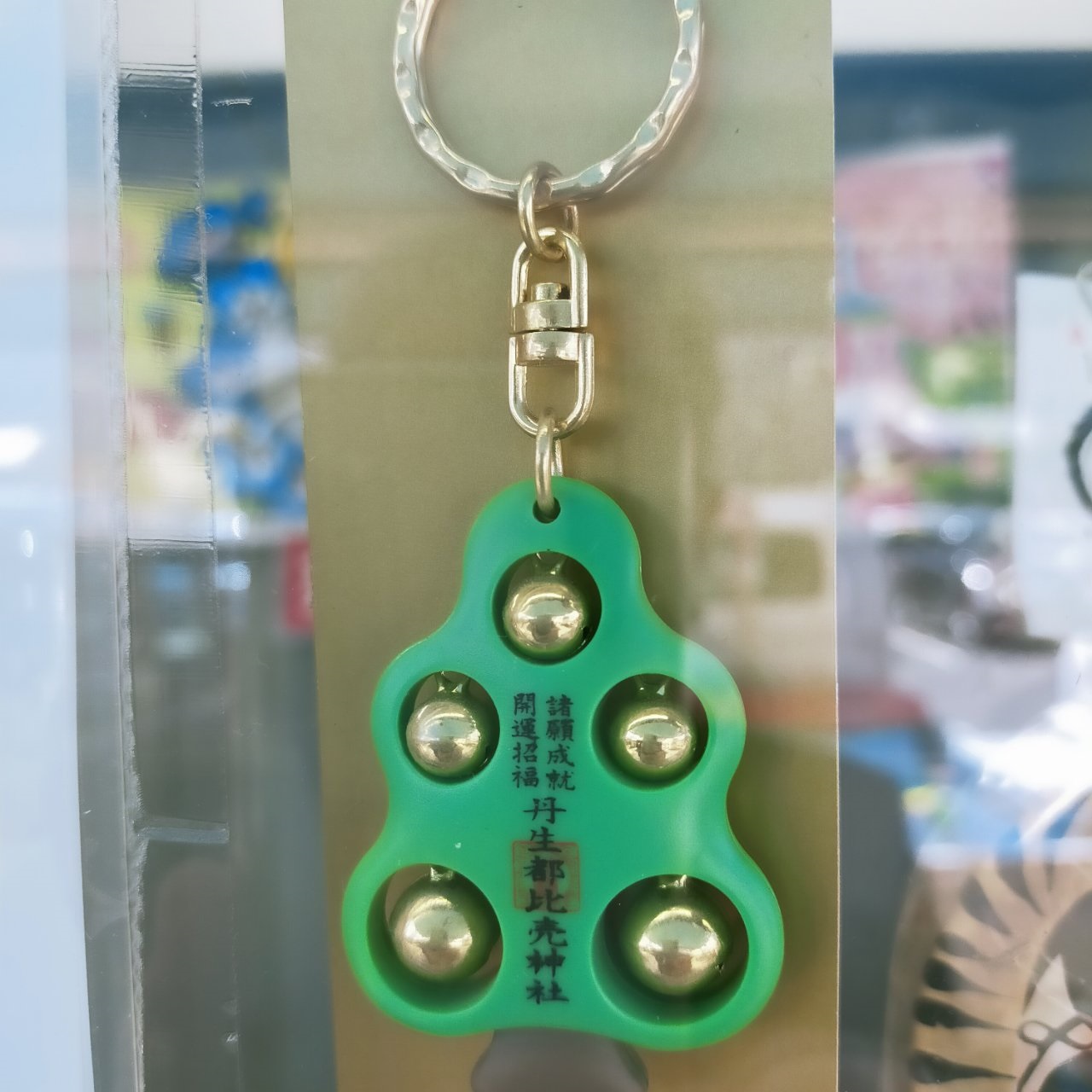売場の窓に高野山の守護神である世界遺産 丹生都比売神社(にうつひめじんじゃ)の金運向上のお守り(金の成る木守)を奉っています。