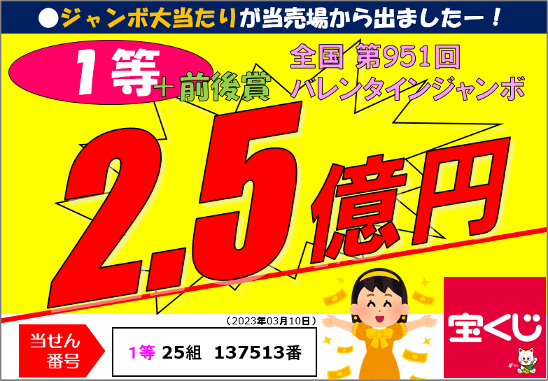 第951回バレンタインジャンボ1等前後賞50,000,000円