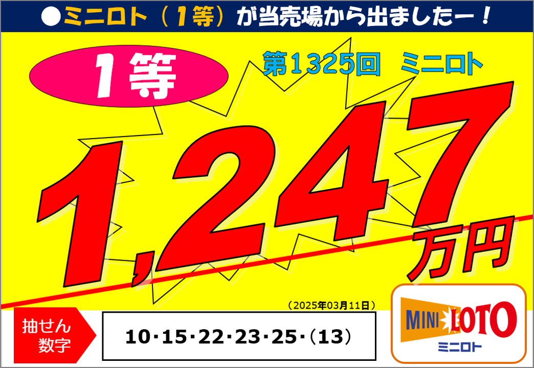 第1325回ミニロト1等12,476,500円