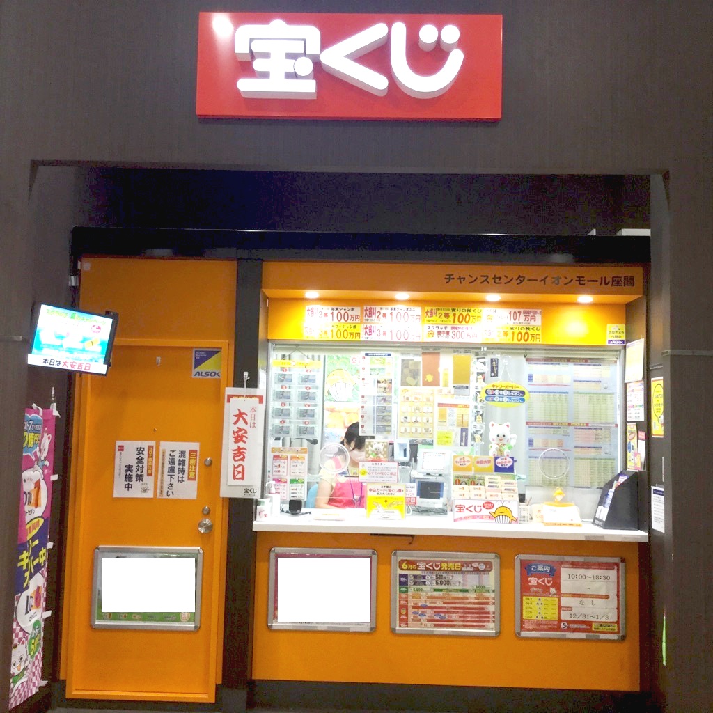 小田急相模原駅、南林間駅から直行バスで約10分の場所にあるイオンモール座間の東モール入口に鎮座するチャンスセンターイオンモール座間です。