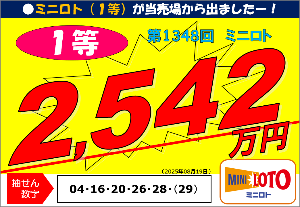 第1348回ミニロト1等25,420,500円