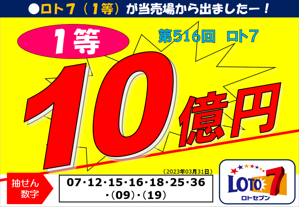 第516回ロト71等1,000,000,000円