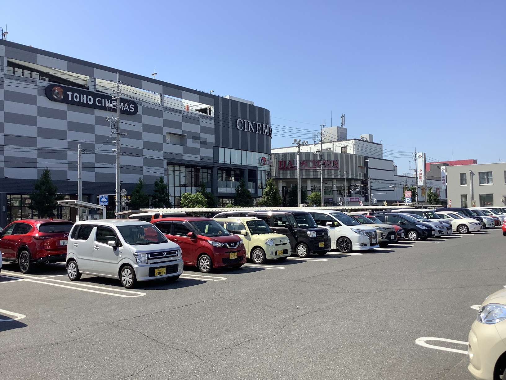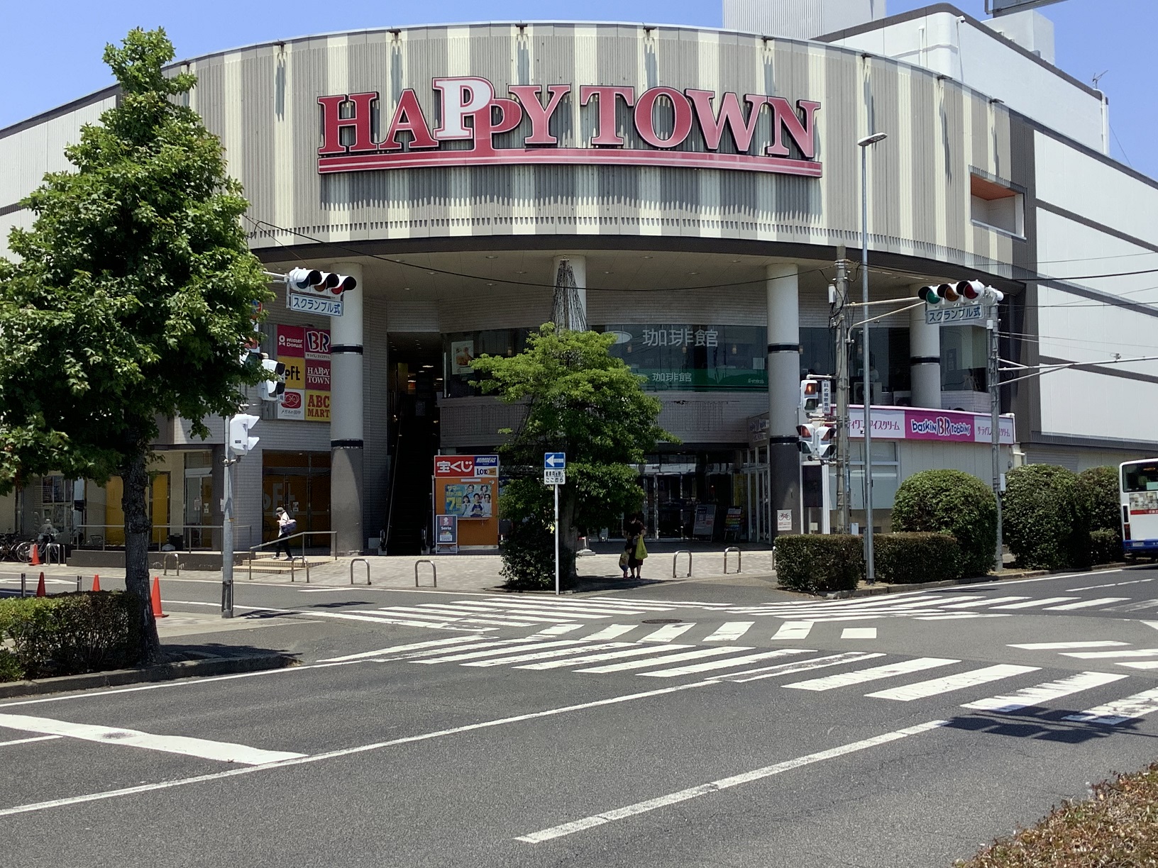 天満屋ハピータウンとシネマタウンの間にある、夢~たんの宝くじ売場が目印です。