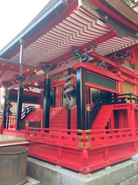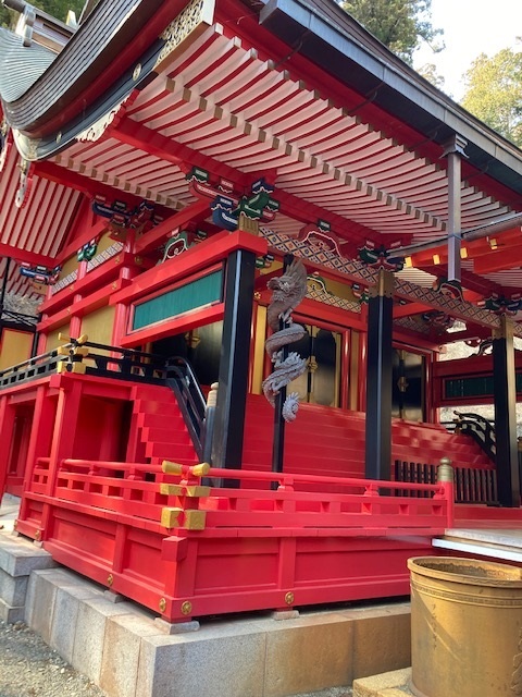本殿の柱に巻きついている「昇龍・降龍」も必見です。初代の龍は、名工左甚五郎の手になると言われ、どちらも水晶を尾に絡ませています。