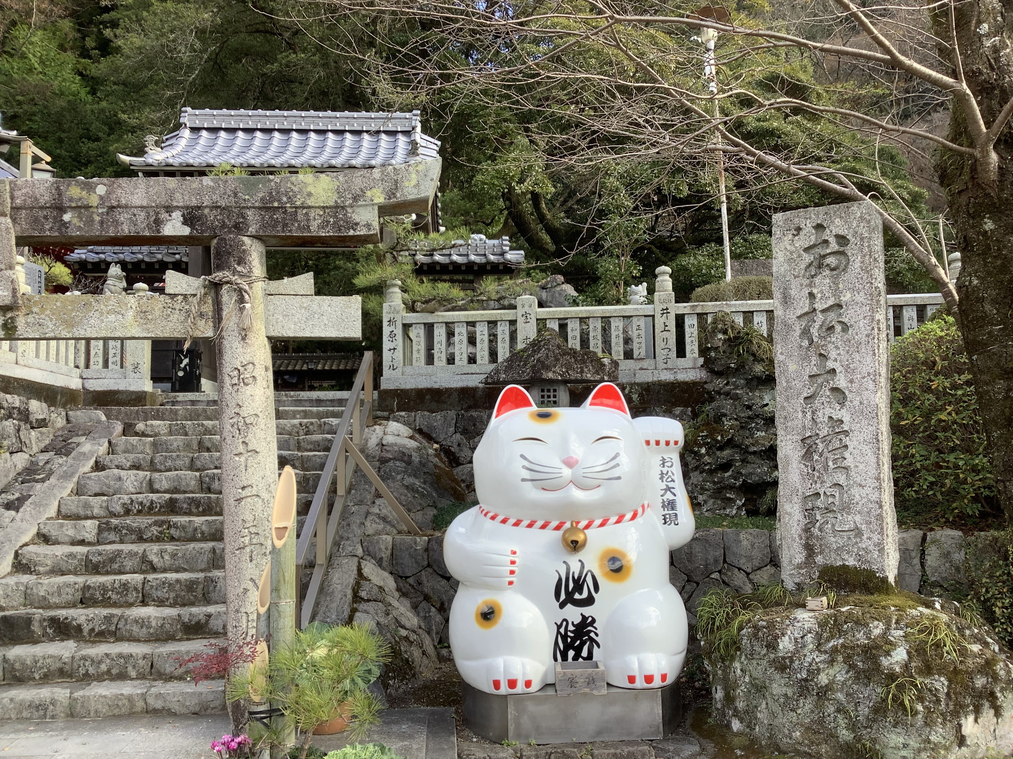 徳島県阿南市にある「お松大権現」。「猫神さん」と言われて親しまれている日本三大怪猫伝の舞台となった地です。