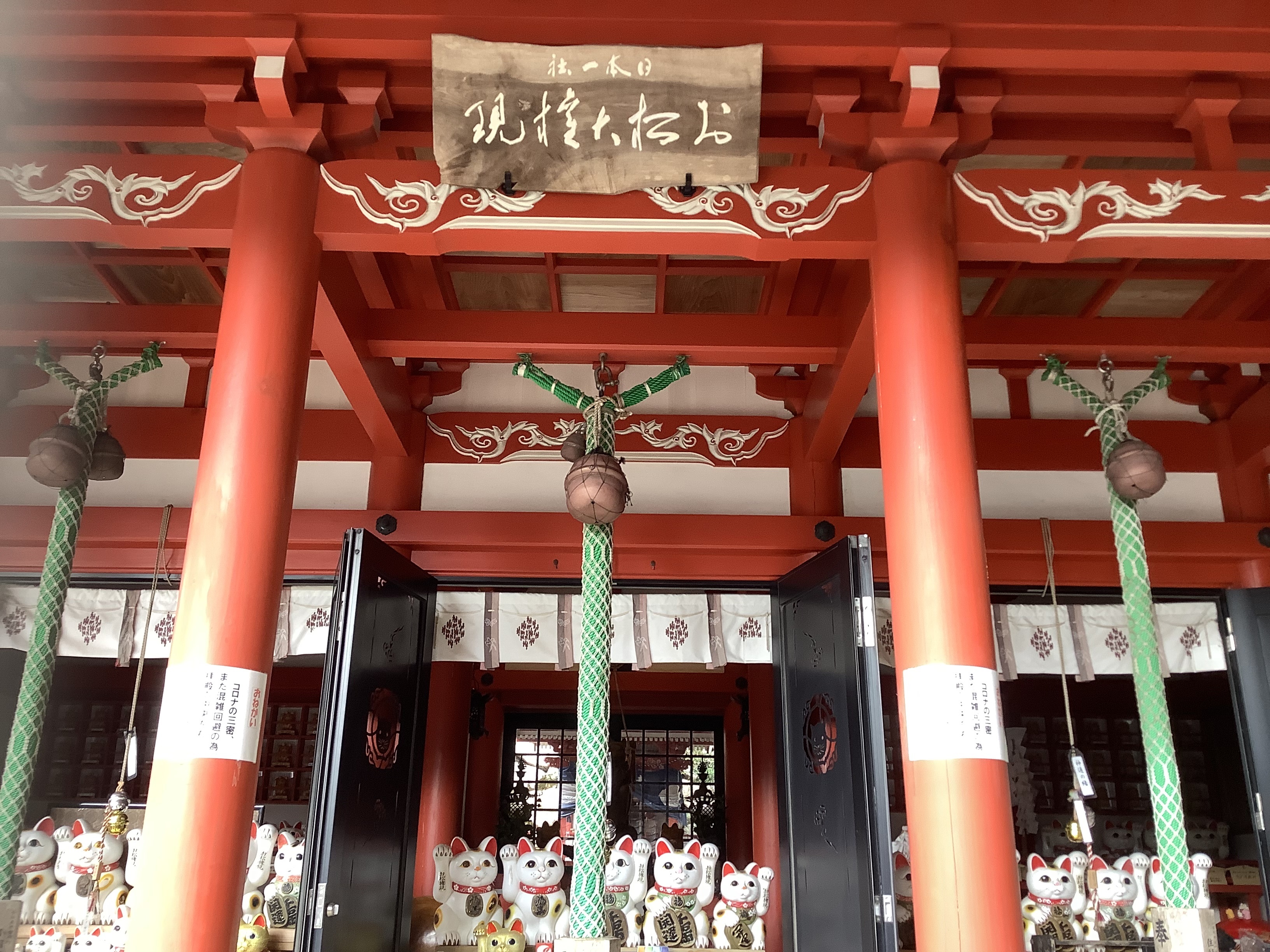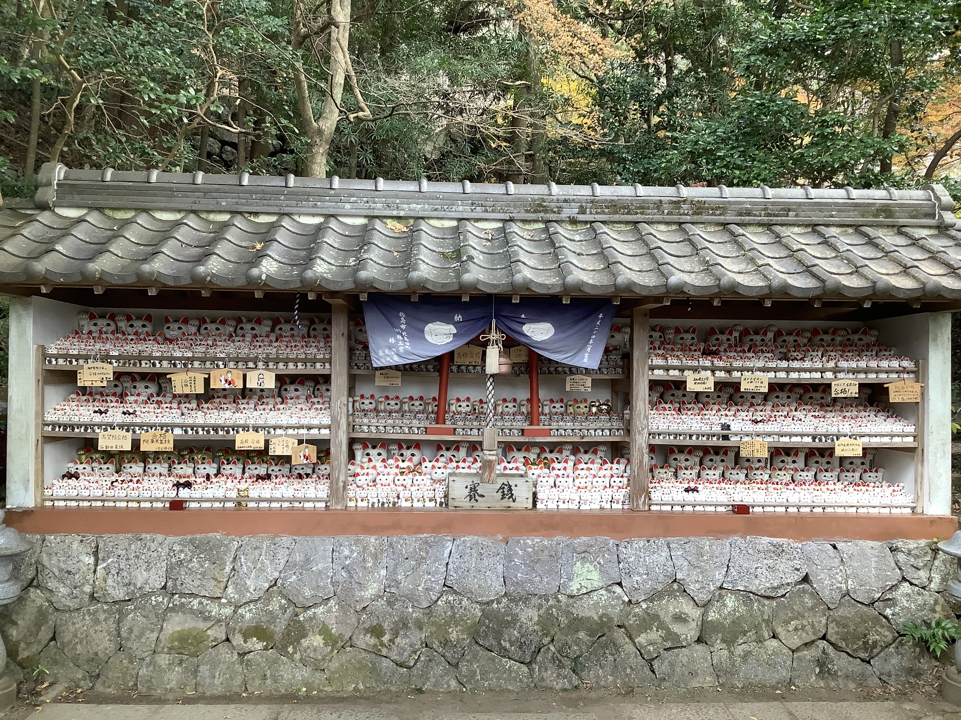 社殿には約1万体の招き猫が奉られていて、ジャンボ猫・地蔵猫・狛猫・魔除け猫・さすり猫・猫の大仏・猫不動などがあります。
