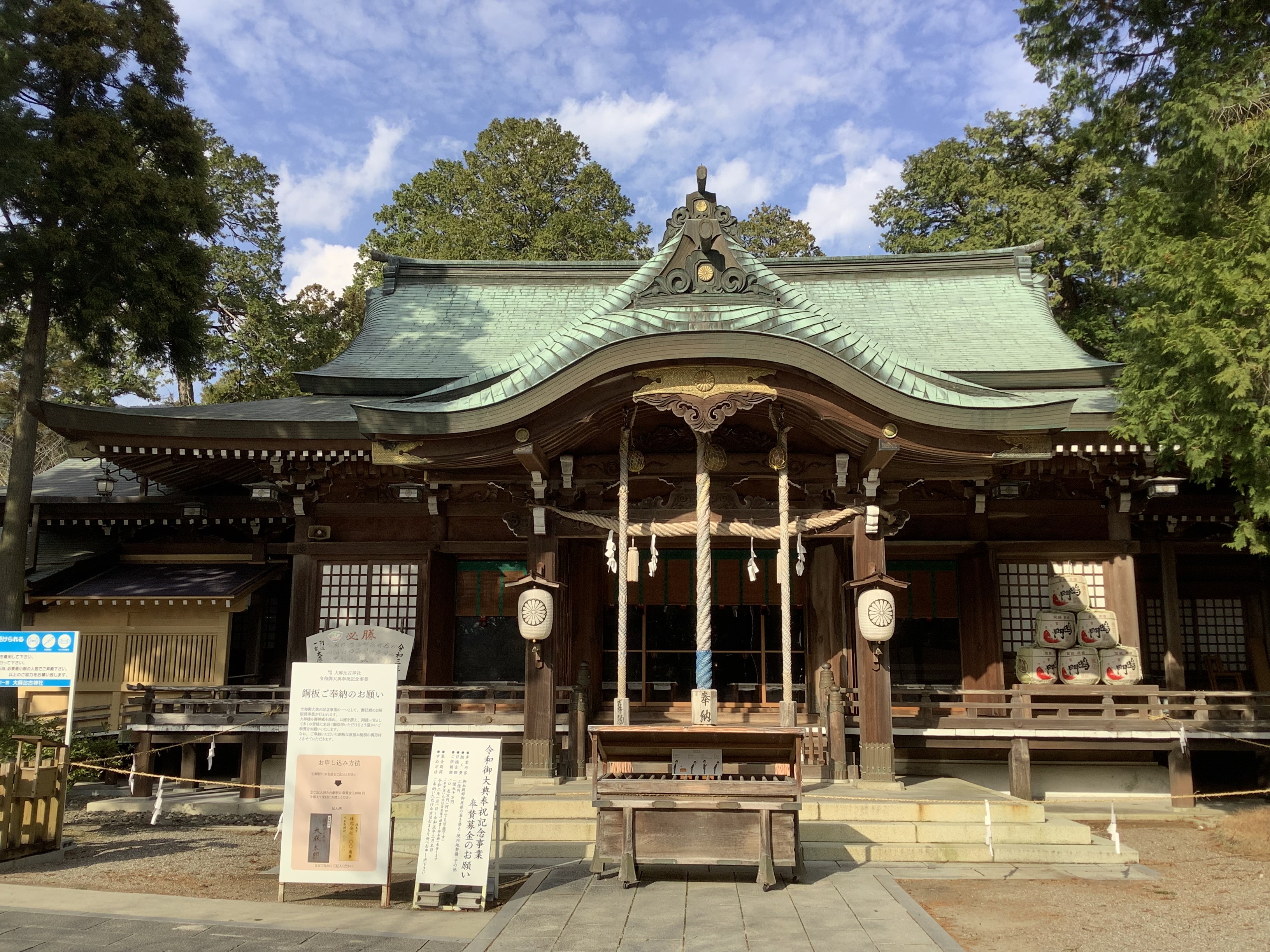 こちらの主祭神は「大麻比古大神」と「猿田彦大神」の二柱です。「大麻比古大神」は、この地で麻布や木綿の作り方などを教え、郷土の産業の基礎を築いたことから、五穀豊穣にご利益があると言われています。「猿田彦大神」は、天孫降臨の際、道案内をしたとされていて、方除・厄除・交通安全などにご利益があるとされています。