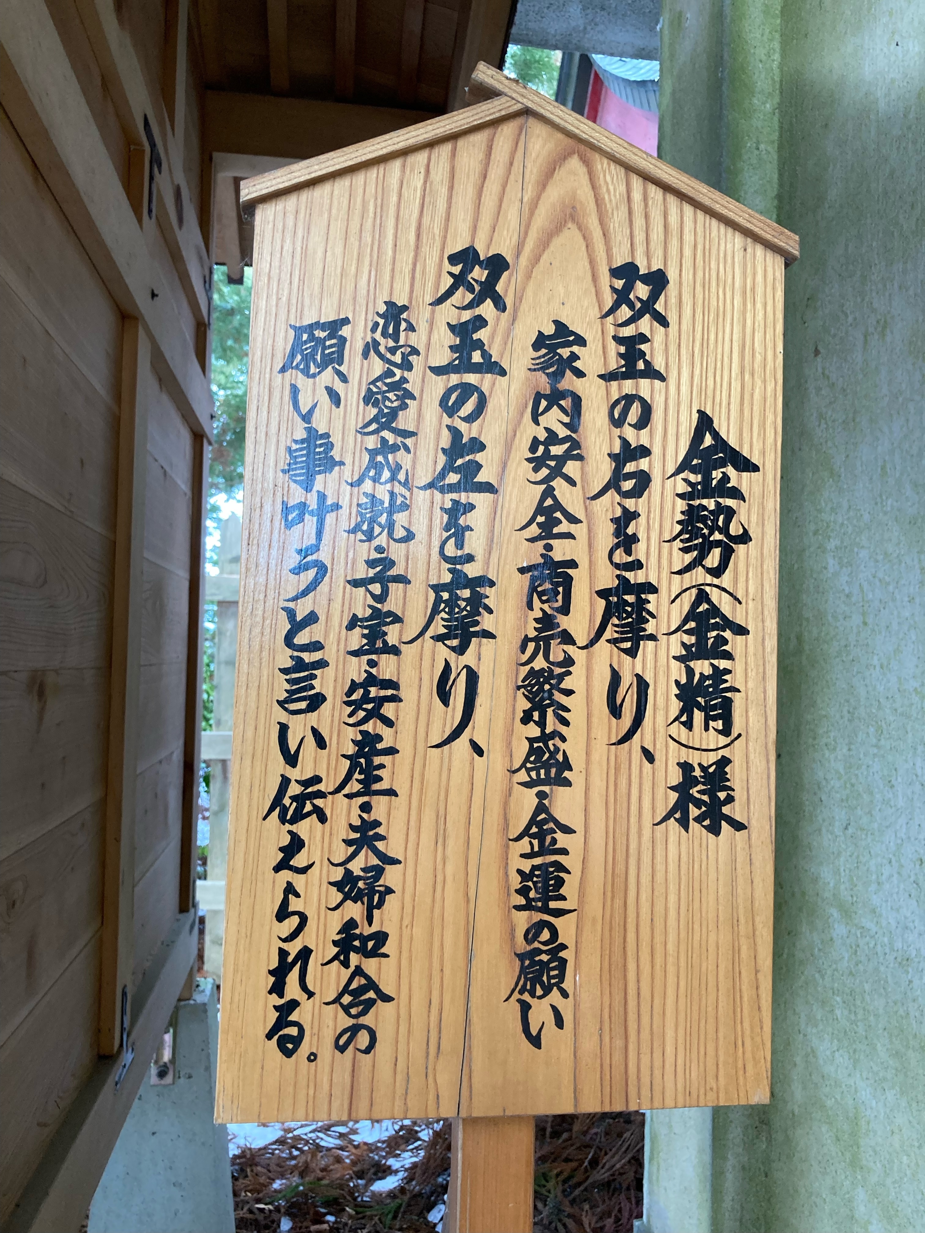 こちらの金運パワースポットは、境内の末社となる「金勢(金精)神社」。「金勢(金精)様」という二つの玉が左右に祀られており、右を摩ると「家内安全・商売繁盛・金運」のご利益が、左を摩ると「恋愛成就・子宝・安全・夫婦和合」のご利益があると言い伝えられています。