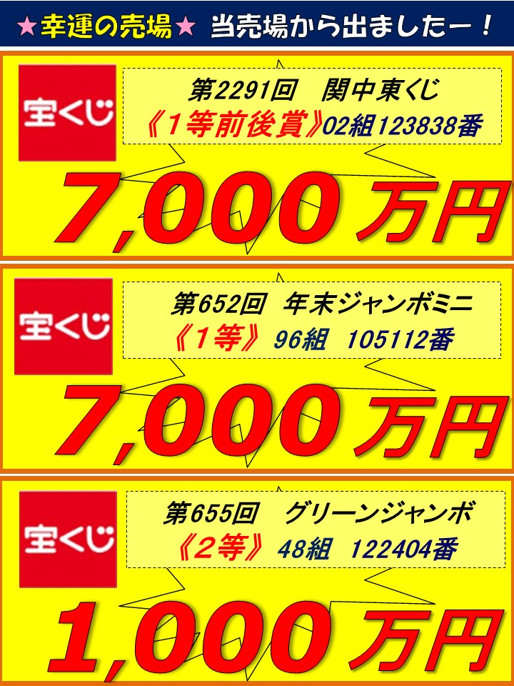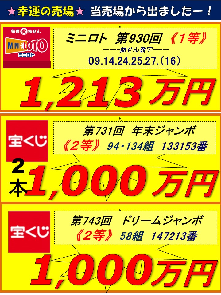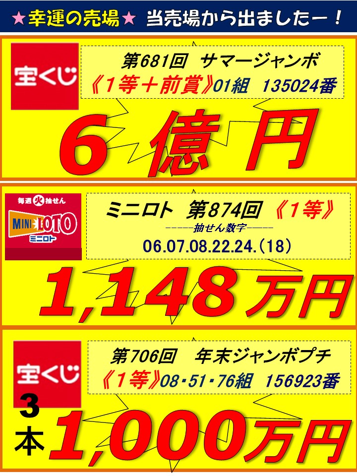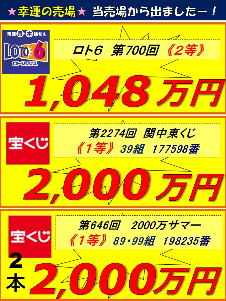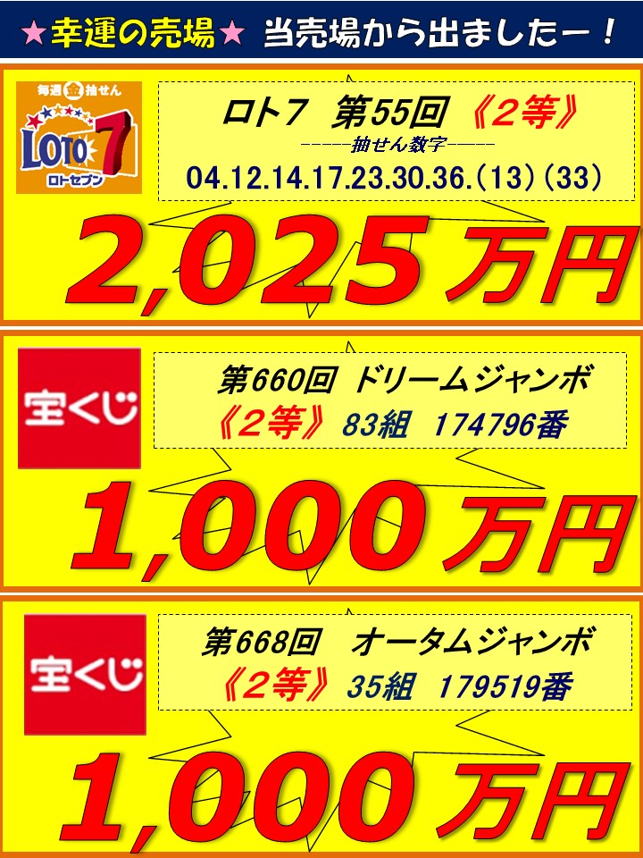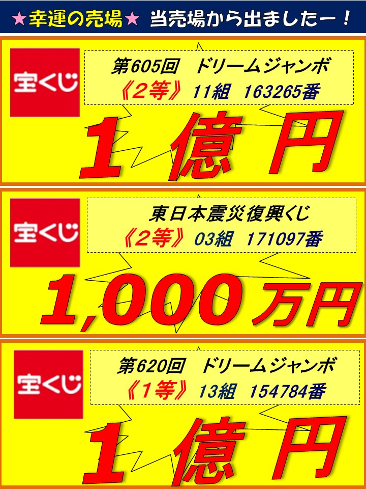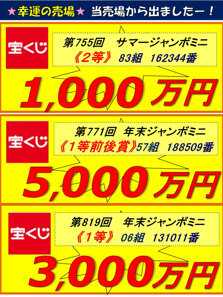 広面チャンスセンター 高額当せんの軌跡(キセキ)!過去10年間の1,000万円以上の当せんをご覧下さい!!次はあなたかも!