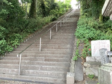 八幡さまに上る146段の石段は、柔道の金メダリスト「平成の三四郎」古賀稔彦さんが毎日足腰の鍛錬の為に上り下りされていたことでも有名で、「栄光への石段」とも呼ばれています。