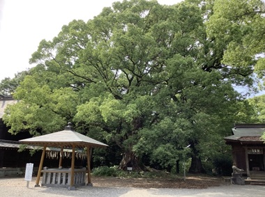 その後ろには樹齢500年超のご神木の大楠。パワーを感じます。