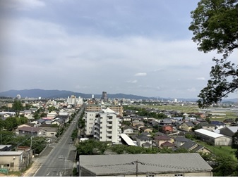 先に見えるは久留米市です。遥かに見えるは耳納連山の高良山です。