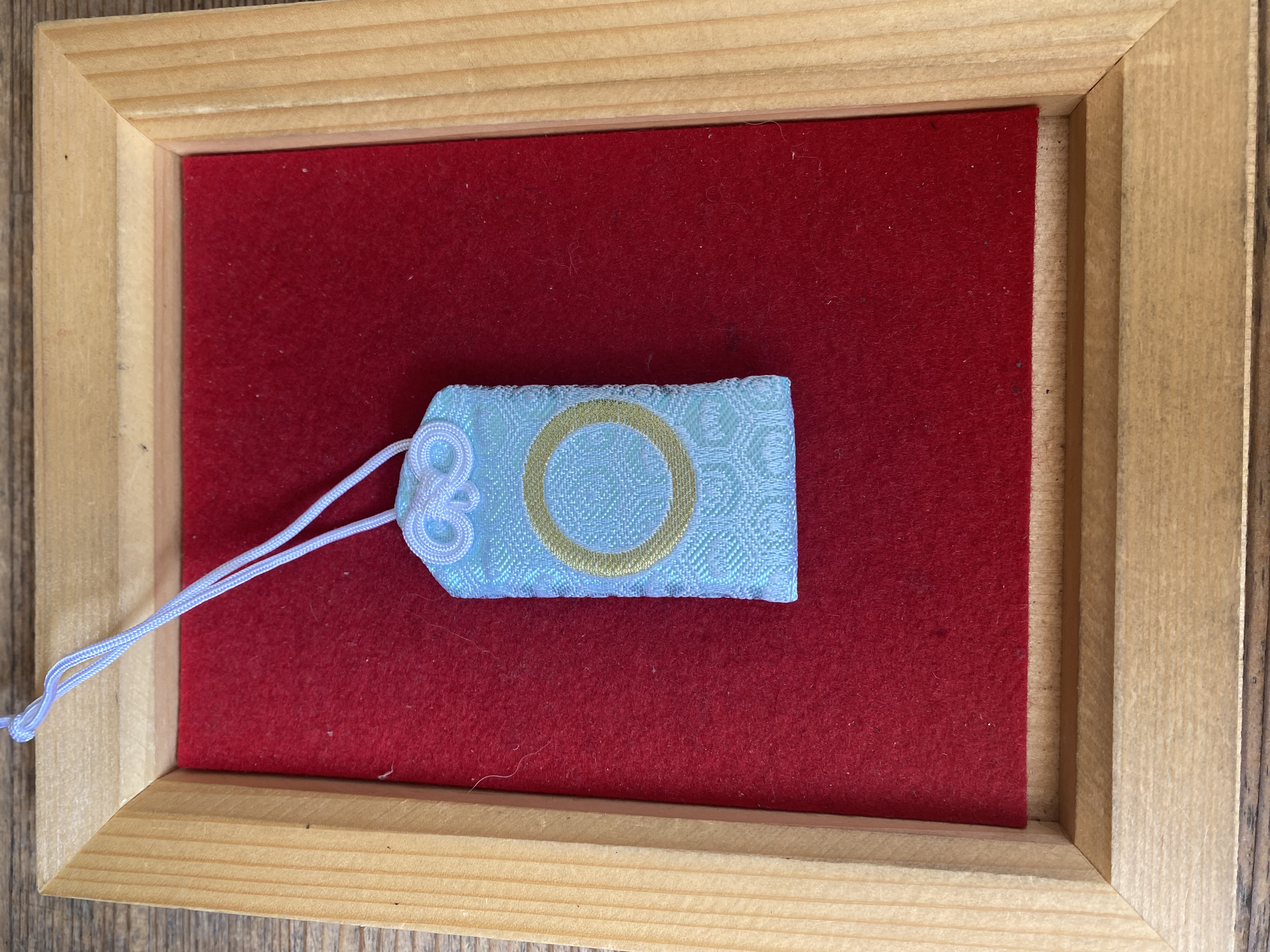 こちらは、金運にもご利益があるお守り「○守り」(まるまもり)です。地模様が「松原市」をもじって松とバラの亀甲紋になっています。