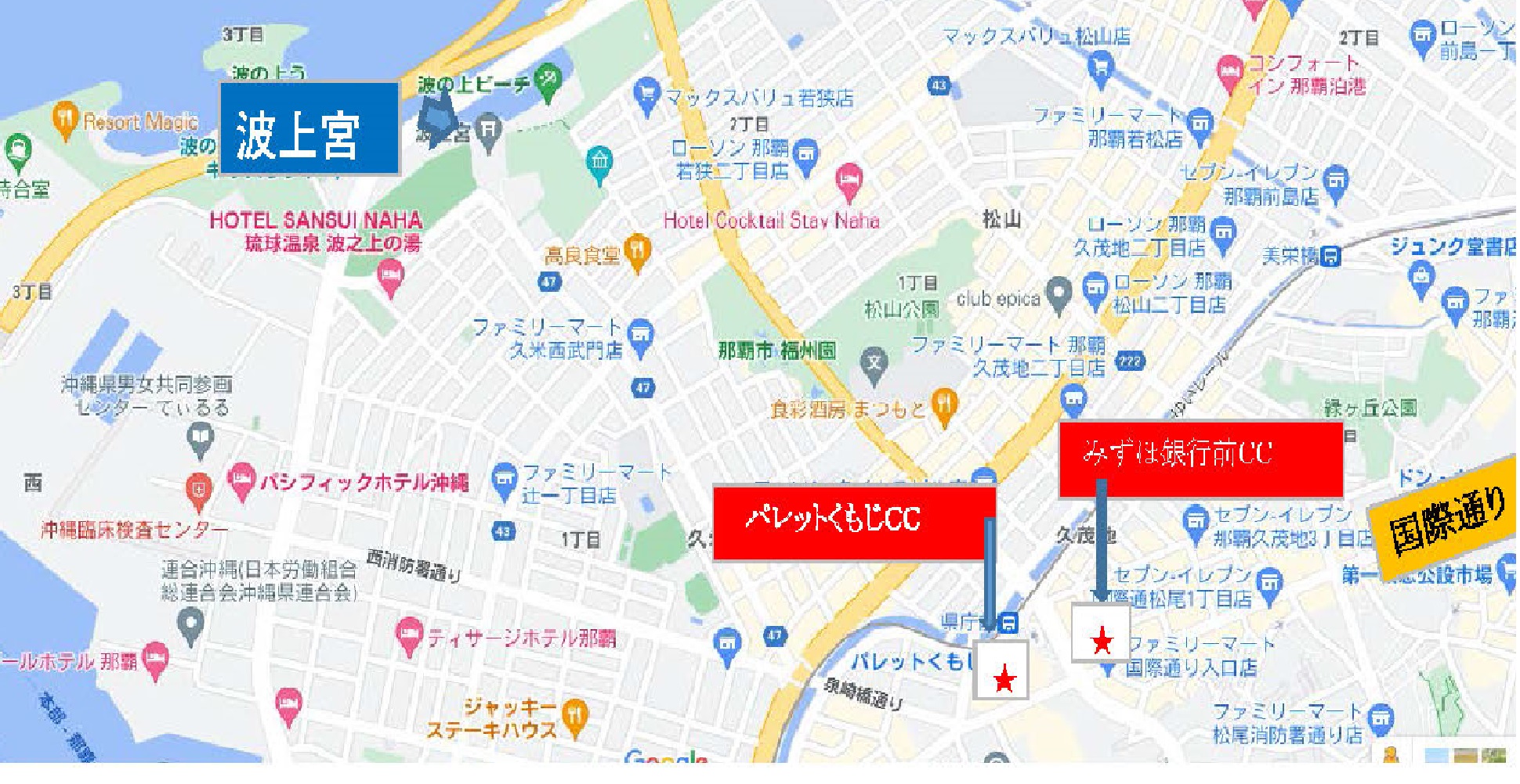 「パレットくもじチャンスセンター」は、パレットくもじバス停留所側入口にあり、県庁・市役所・りうぼうデパートに囲まれ、旅の拠点になっています。運だめしに、スクラッチやロトの「チョイ買い」はどうでしょうか。国際通り散策の折にもぜひお立ち寄りください!
