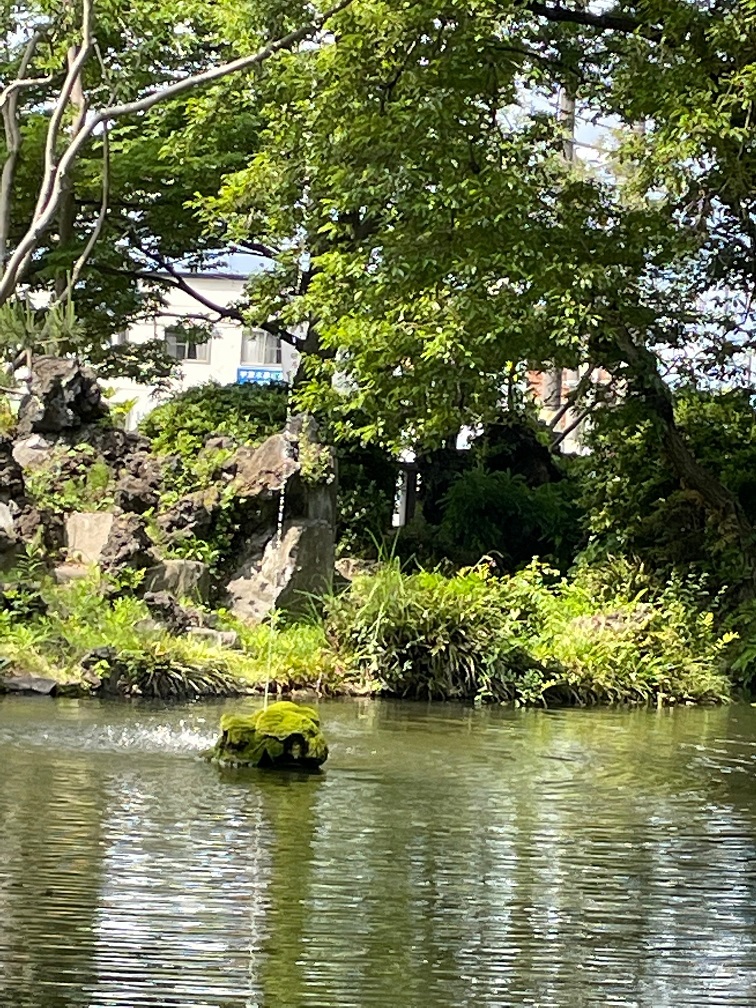 殺生を止めて作善のため、捕らえた生類を河海山野に放つ「放生」が行われたことから、毎年仲秋の名月の日の「放生祭」が八幡宮最大の神事となっています。この附近は江戸末期ごろまでは鳥居の前面に海水が打ち寄せていた白砂青松の灯で、大祭に放魚が行われていましたが、海岸線が遠のくにつれ、現在では放生池として、その名残をとどめています。