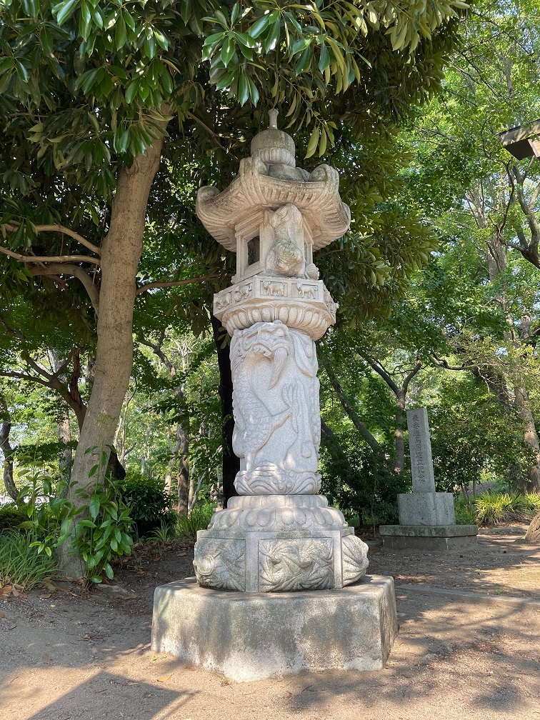 鳥居や御神木の他にも鳥居手前の巨大灯籠、拝殿の柱には阿吽の狛犬、そして境内社も多く、散策してあきることがありません。清清しい気持ちで、自然に手を合わせたくなります。駅からほど近い立地に、これだけ広く自然豊かな神社があれば、参拝がてら、ゆっくり散策もしてみたいですね。