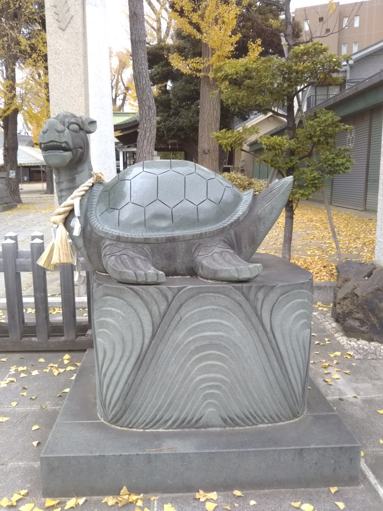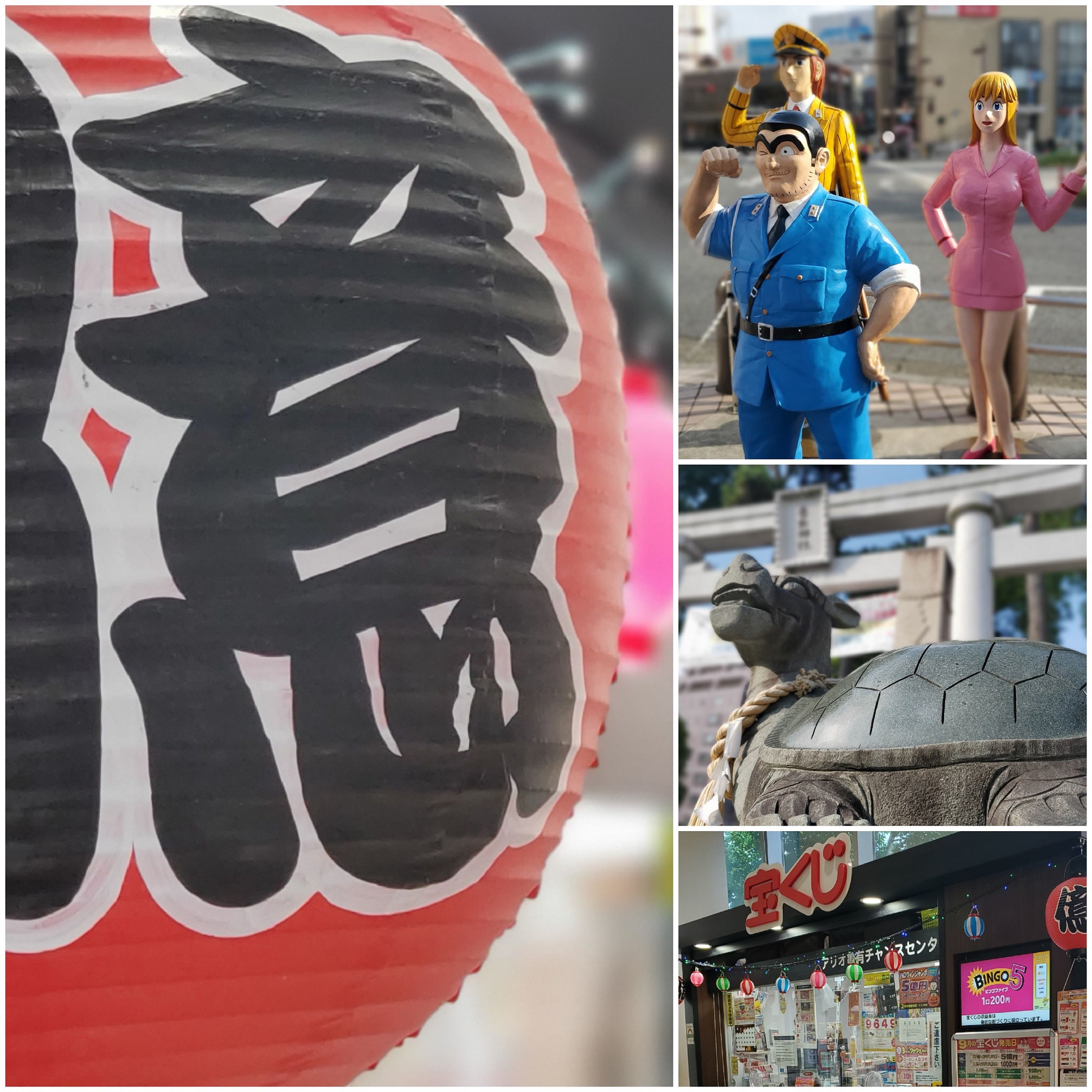 鳥居の前には、珍しい「神亀」像が一対。さすが「亀有」ですね。参道には、漫画の主人公の像が空を見上げています。「どんな時も両さんのように明るく元気に夢を持って歩んで欲しい」というメッセージですね。