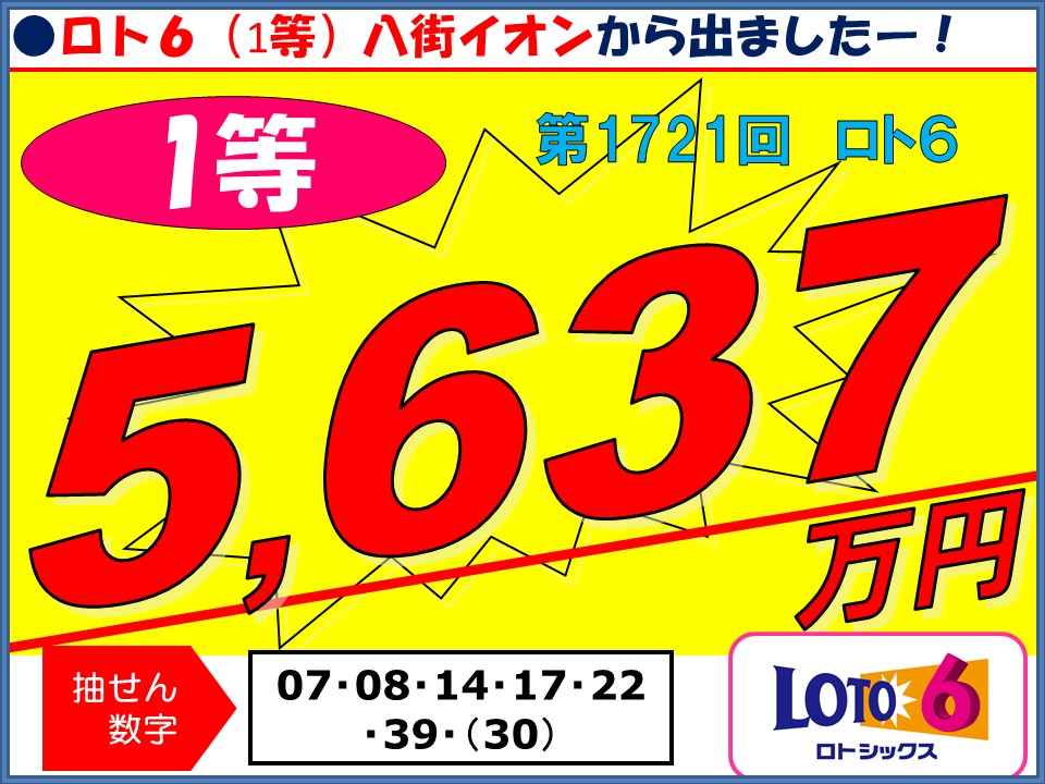 ロト6 1等 5,637万円!!