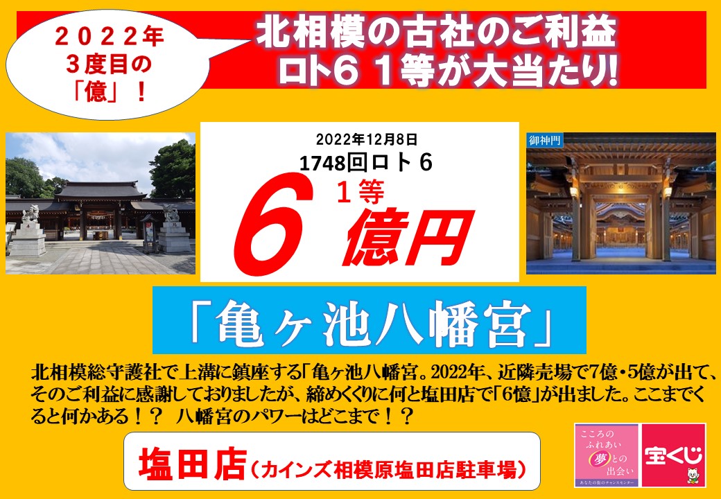 と言っていたら、12月、「塩田店」でも出ました! 7でも8でもなく、「6憶円」💦