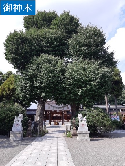 境内には、様々なパワースポットがあります。参道を包むような御神木。樹齢約350年、2本の木が寄り添いながら生長し、たくさんの銀杏が実ることから夫婦銀杏と呼ばれ、この樹勢、生命力に満ちた御神木に触れて力を頂こうとお参りする方も多く見受けられます。