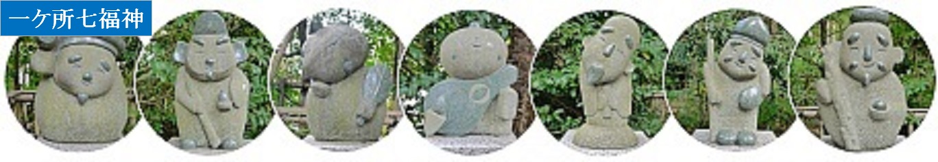 「一か所七福神」は、その名のとおり1か所で七福神すべてにお参りでき、愛嬌のある七福神石像を撫でながら祈願できて、目も和んで穏やかな気持ちになれると評判です。「1か所」が嬉しいですね。
