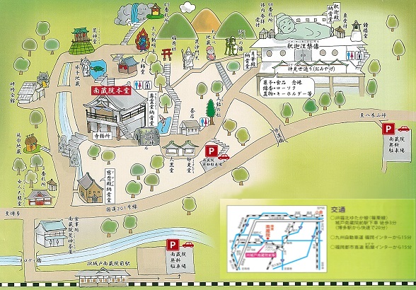 寺務所、茶店に置いてある南蔵院MAPは、宝くじ篠栗チャンスセンターにも準備しております。