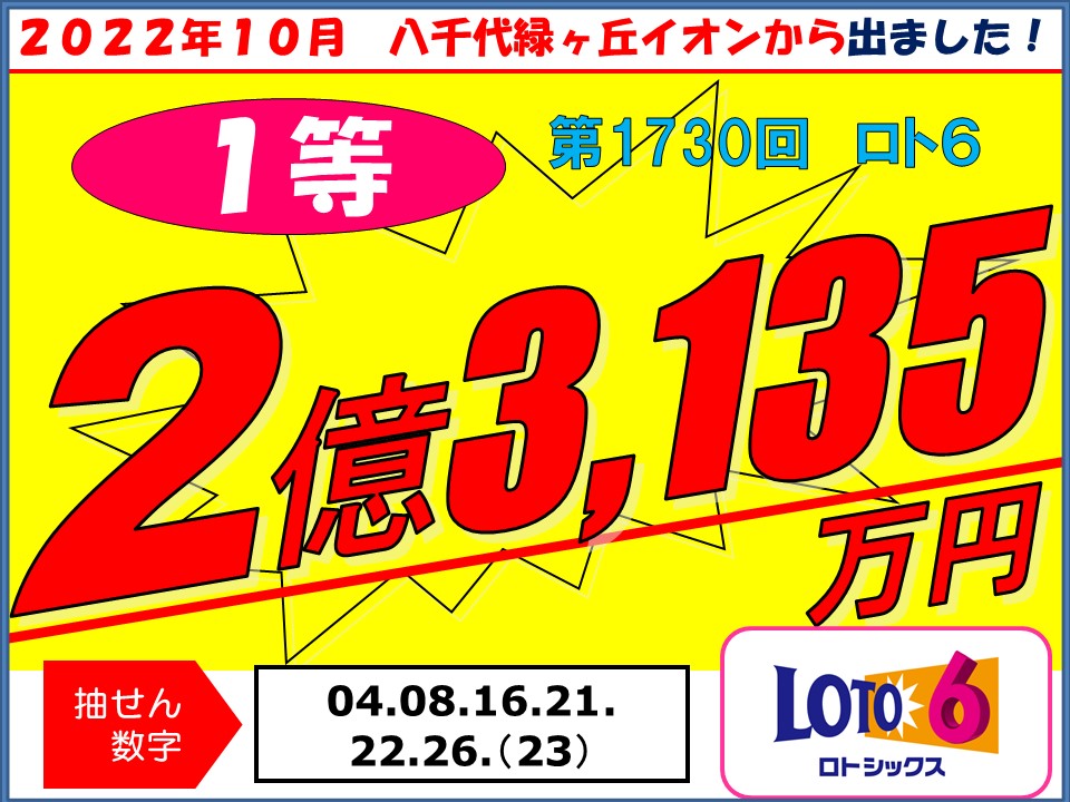 キャリーオーバー中のロト6で、1等 2億3,135万円!
