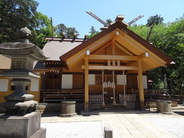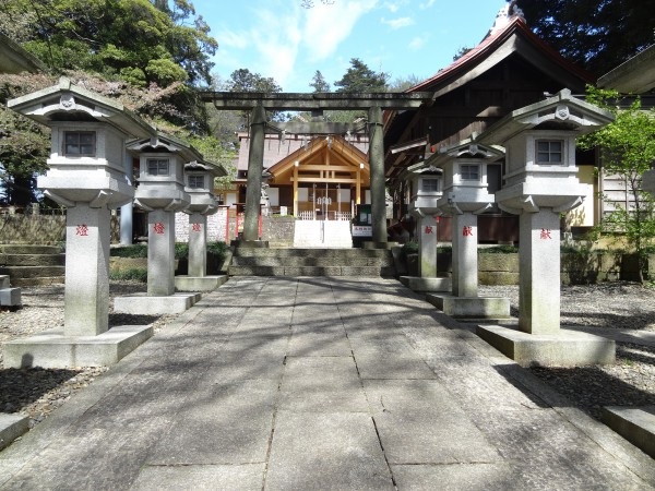 正面の階段を上がっていったところに灯籠と鳥居があり、その奥に拝殿が佇んでいます。石灯籠が参道の両側にきれいに並んでいて、参拝の気持ちを高めてくれます。拝殿は新しくなっています。