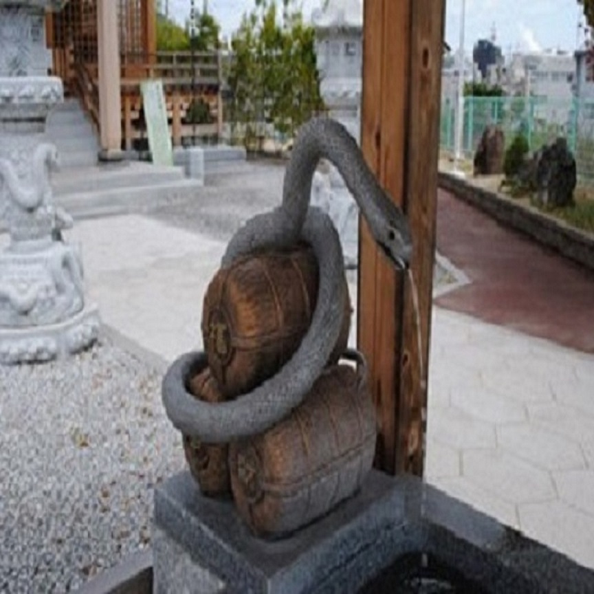 その他にも様々なものが、蛇をモチーフとして造形されています。例えば、手水舎。白蛇の口から流れる水で手を浄めれば、金運アップしそうな気がしてきます。支える俵には「幸」・「福」・「財」の文字が刻まれご利益も倍増!?