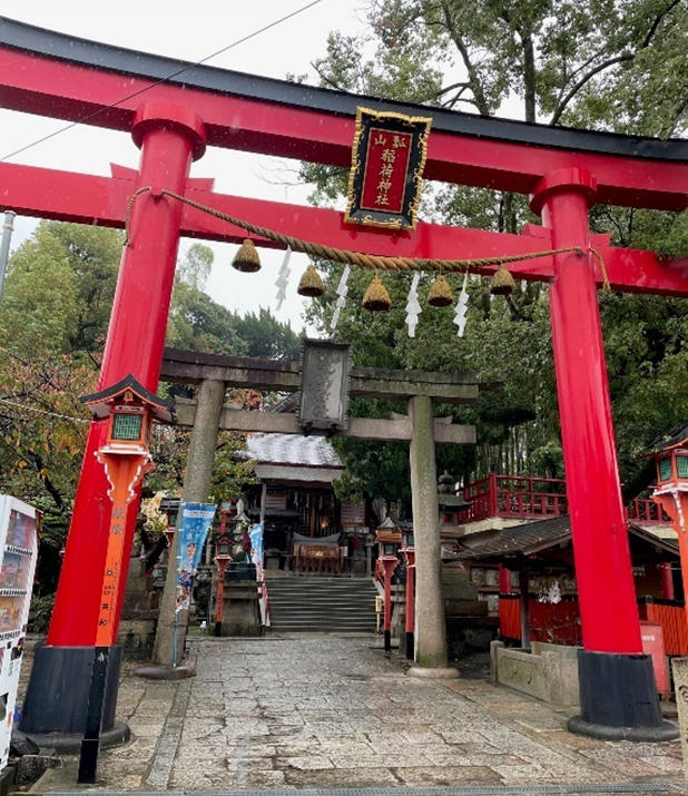 “日本三稲荷、辻占総本社(*)”であり、創建は天正11年(1583年)に遡ります。豊臣秀吉が大阪城築城に当たり、吉方位である巽(東南)の方向三里にある、豊臣家の馬印にもあるひょうたんの形の山(瓢簞山古墳)に、鎮護神として伏見城から「ふくべ稲荷(**)」を勧請したことが由緒とされています。