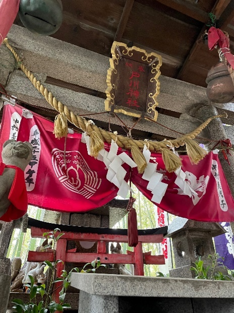 殿の奥(裏)にある「戸川社」は、特に「勝負運」に強い神様です。古くから「勝運」を授かろうと多くの参拝者から崇められています。