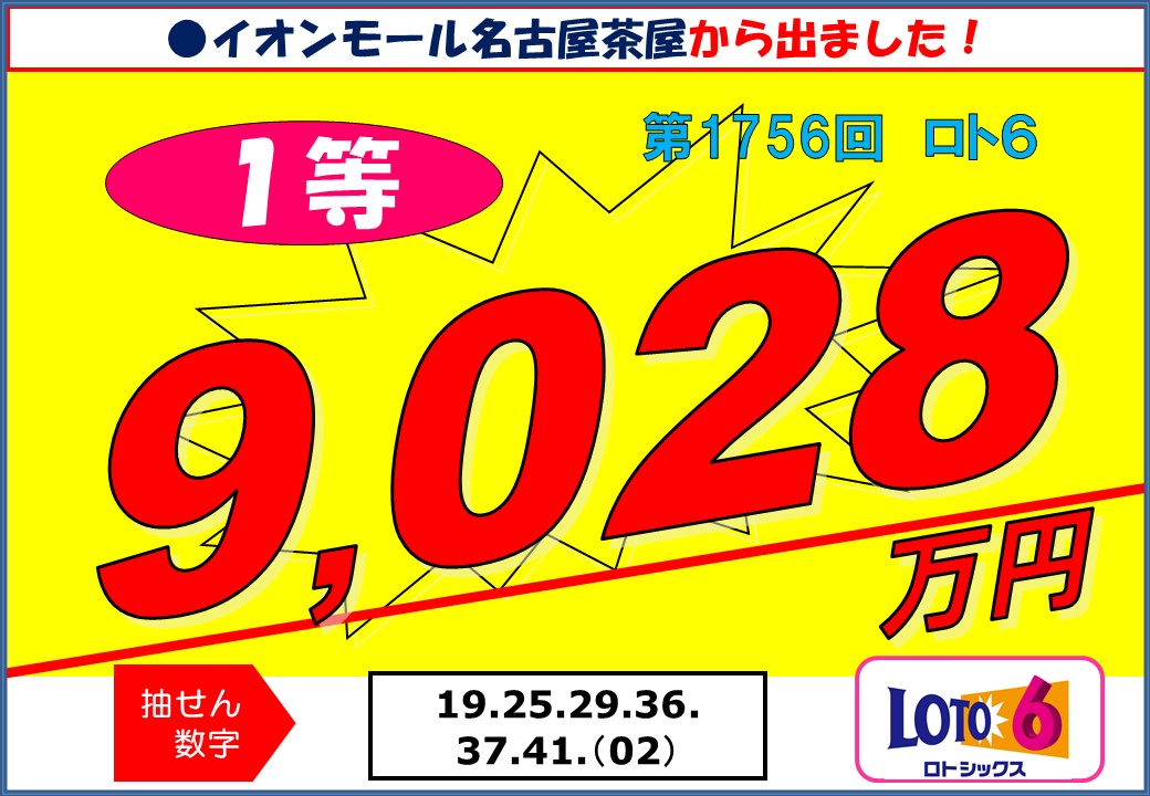 2023年1月 ロト6 1等 9,028万円! 「チャンスセンターイオンモール名古屋茶屋」から出ました!!