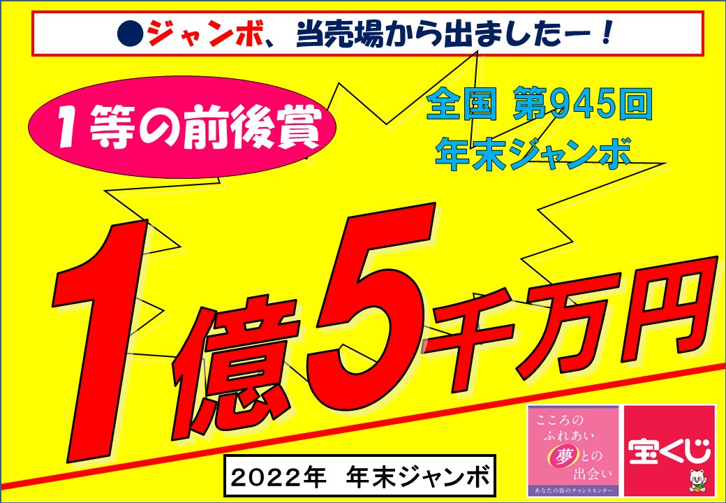2022年 年末ジャンボ 「大安イオンチャンスセンター」で1等の前後賞 「1億5千万円」出ました!